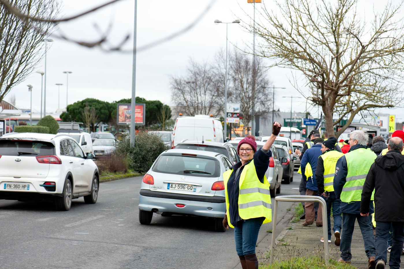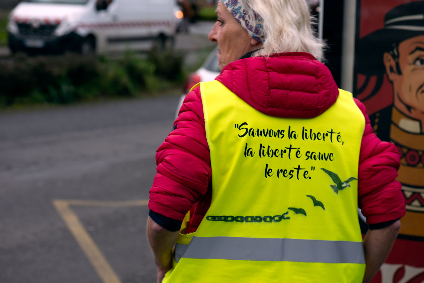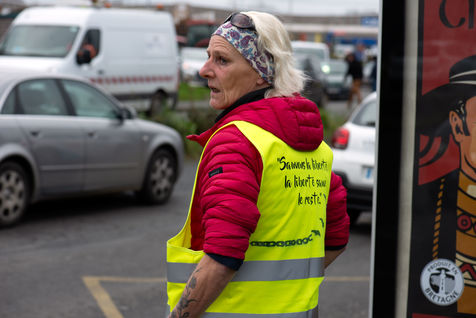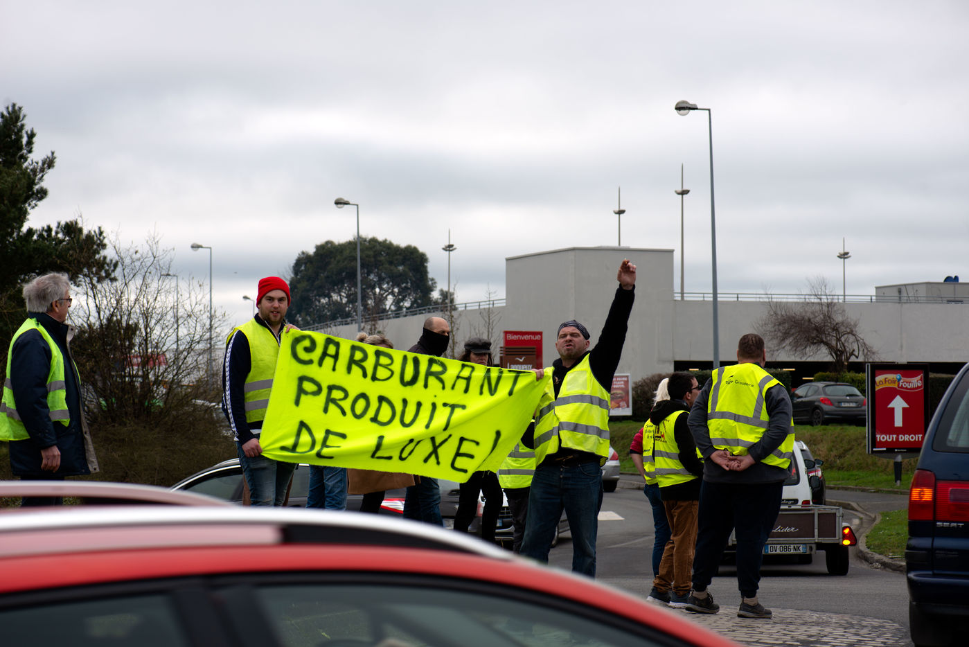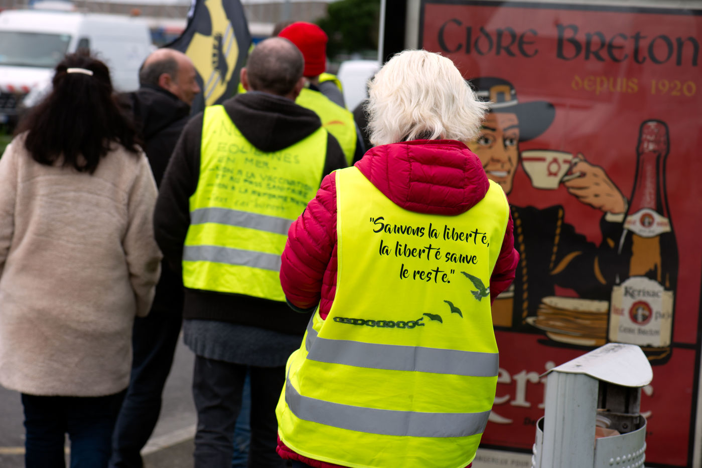 Action of some yellow vests on a traffic circle in Saint-Brieuc, against the increase in fuel prices.