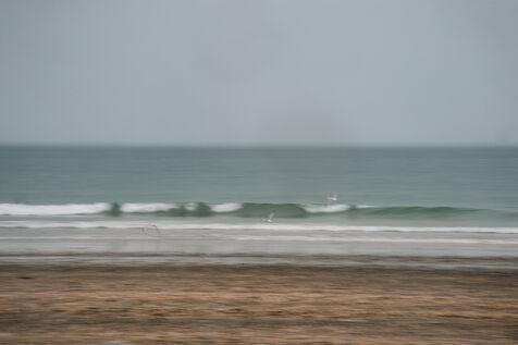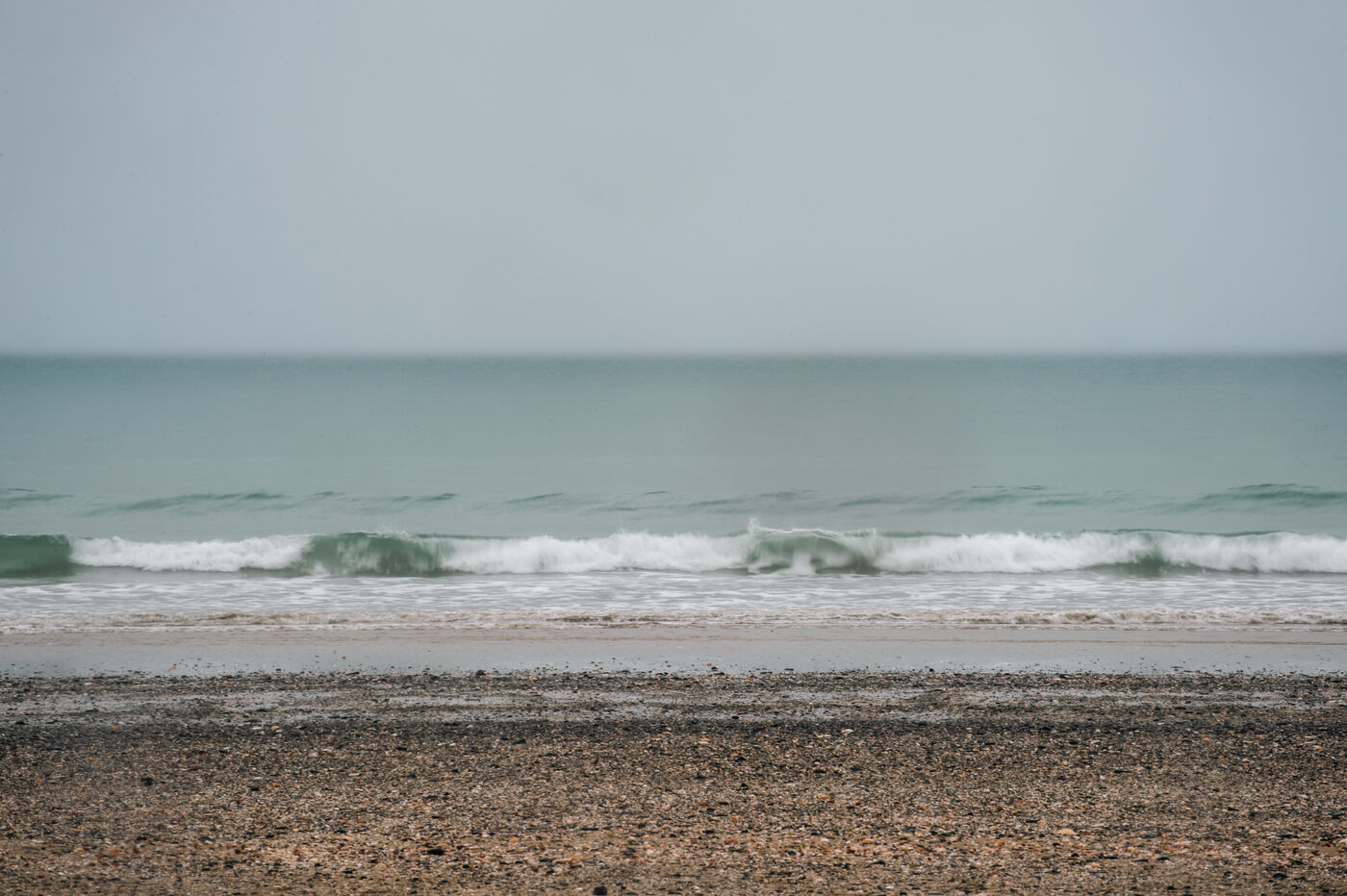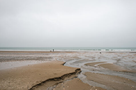 There's a very special atmosphere on Plérin's plage des rosaires, where seagulls and gulls flutter about, while a few walkers with their dogs brave the rain and pretend nothing's happening.