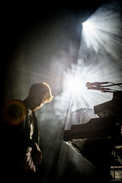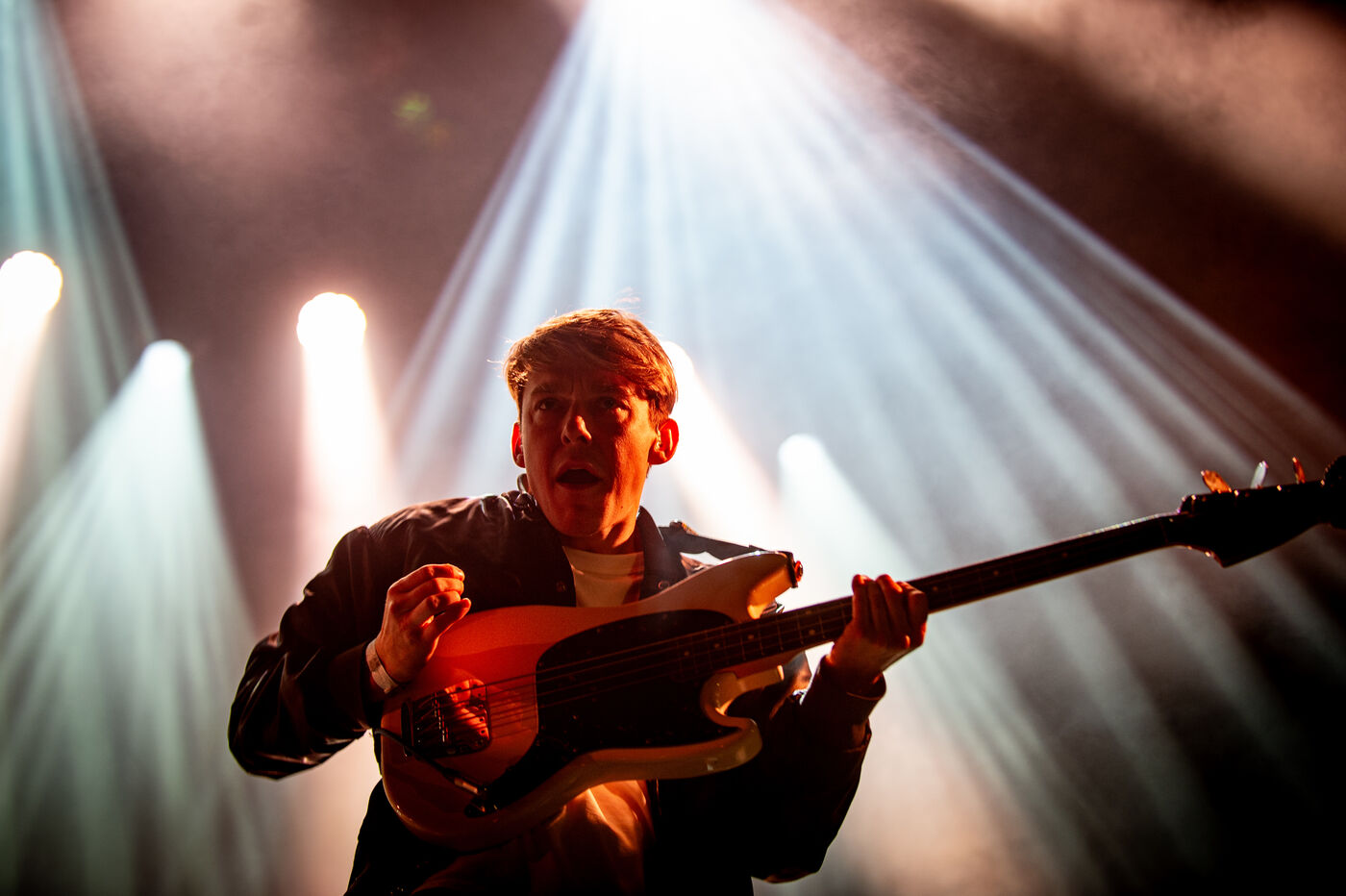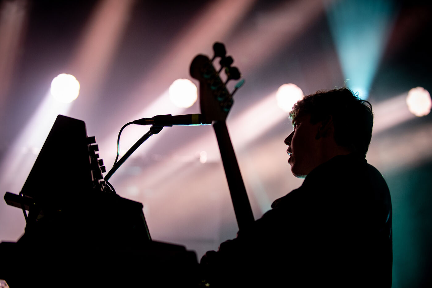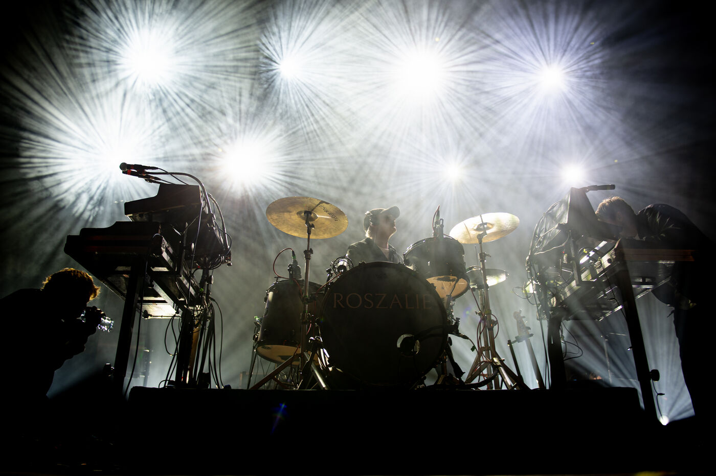 Electro trio Roszalie on stage at the Art Rock festival in Saint-Brieuc.
