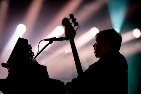 Le trio électro Roszalie sur la scène du festival Art Rock à Saint-Brieuc.