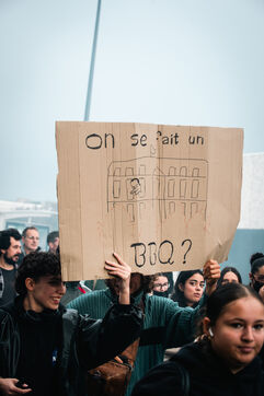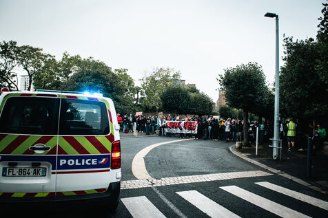 Dans le cadre du mouvement national "Bloquons tout", plusieurs centaines de manifestant.e.s dont le mouvement lycéen (MNL) se sont rassemblées en centre-ville, pour former ensuite un cortège et le blocage du rond-point d'Armor. Chenille humaine, panda en peluche et chants militants contre une présence policière démesurée et sous tension.