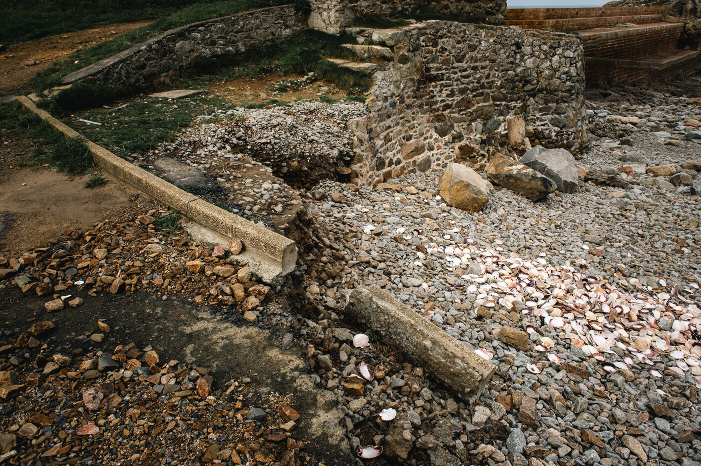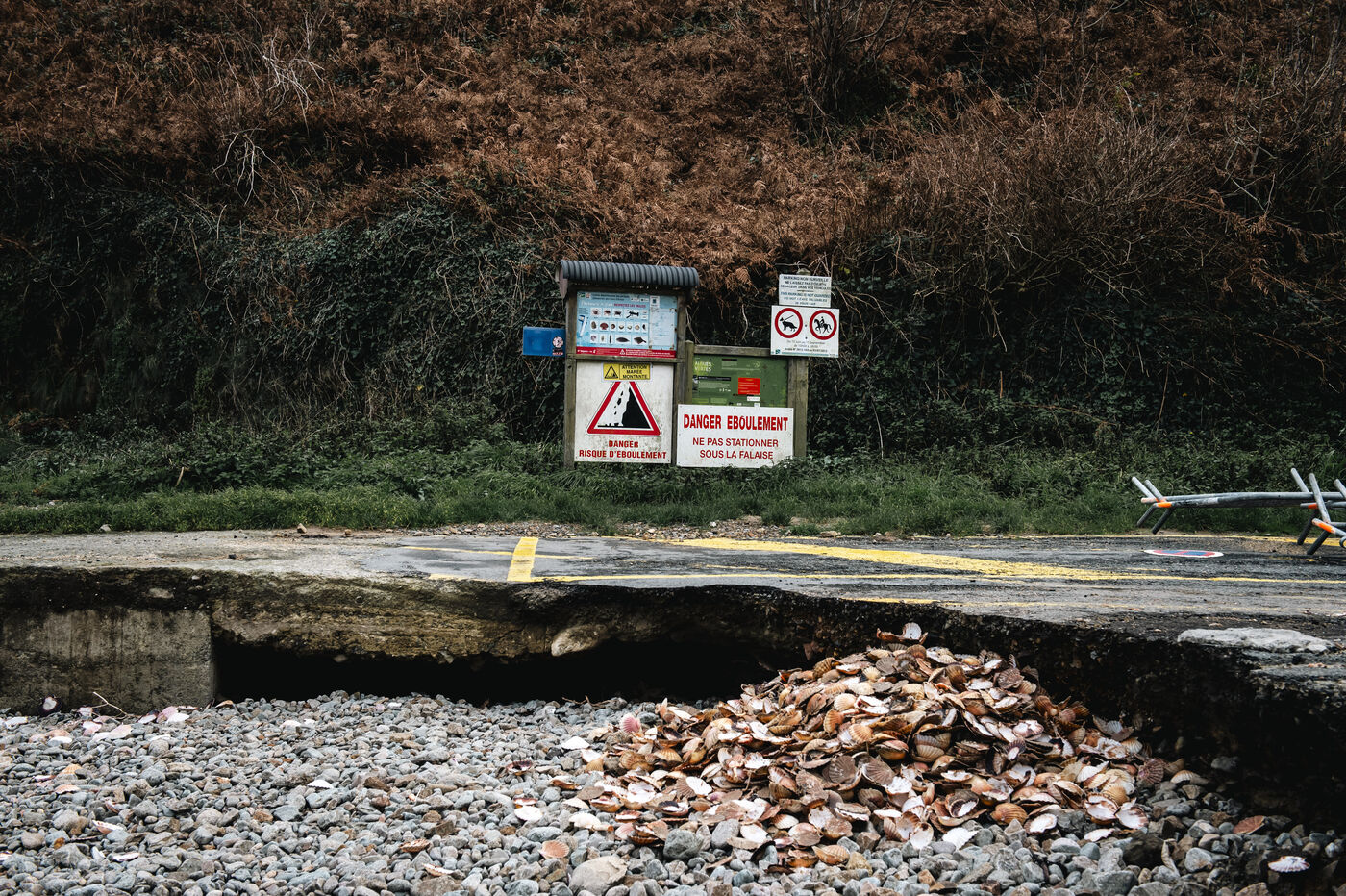 Following the severe flooding that affected the Côtes-d'Armor department, since September 22, 2025, and until further notice, the road leading to Port Moguer in Plouha remains closed to motor vehicles for an indefinite period, as the cost of repairs is still being calculated. The road surface is very fragile, with a risk of collapse, and parking lots need to be repaired. The pebbles at the top of the beach have disappeared, washed away by torrential rain.