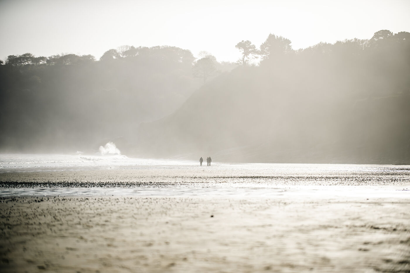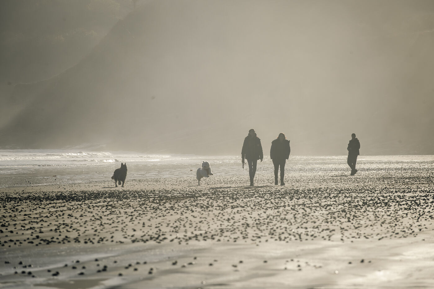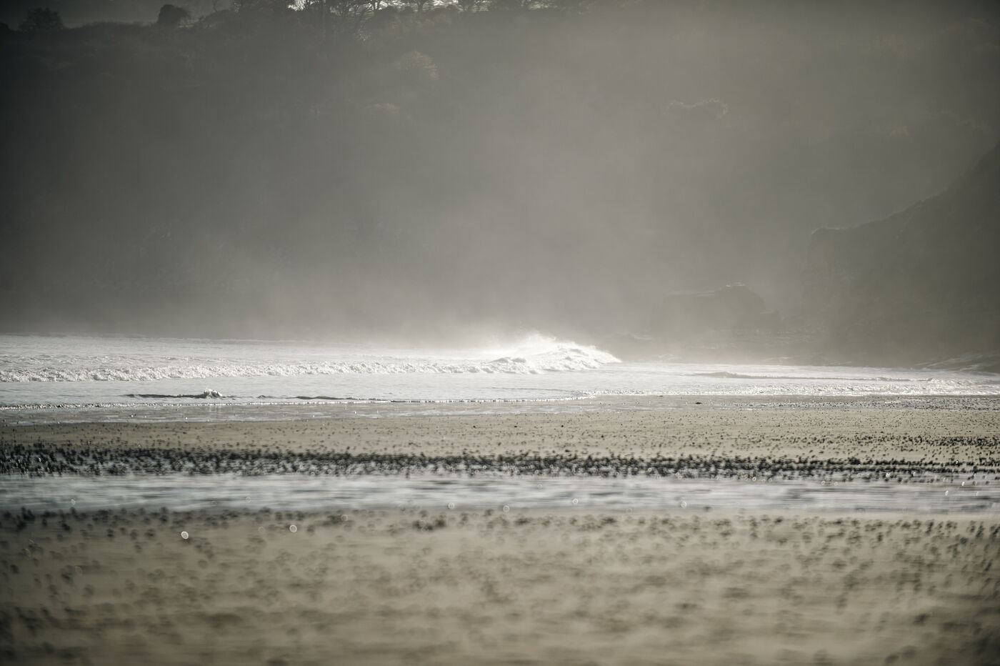 Paysages et rencontres à la plage du Vieux Bréhec à Plouha en Côtes d'Armor sous une lumière d'hiver et les embruns marins.