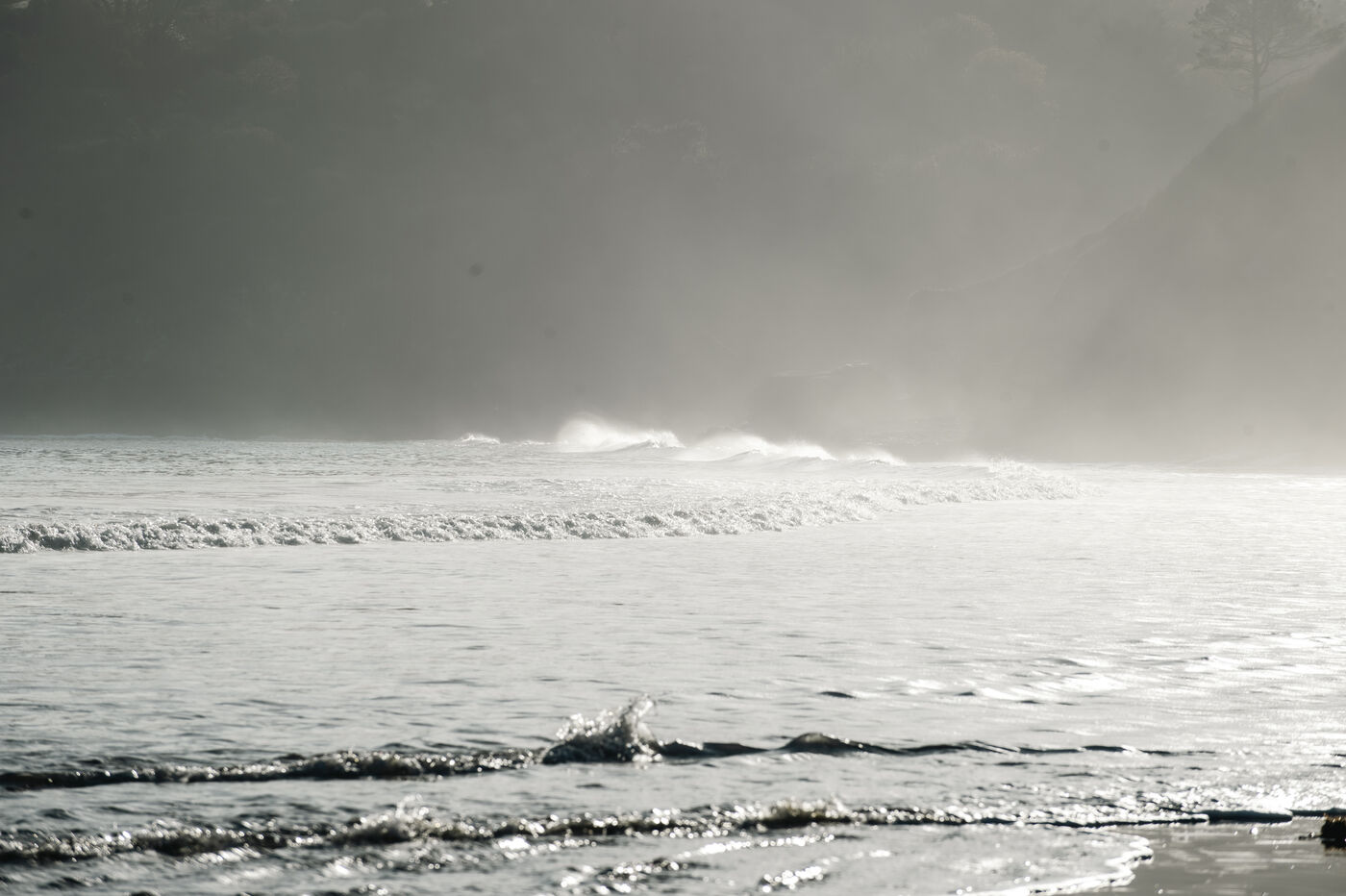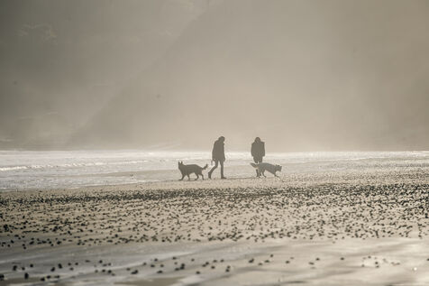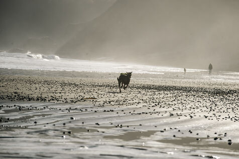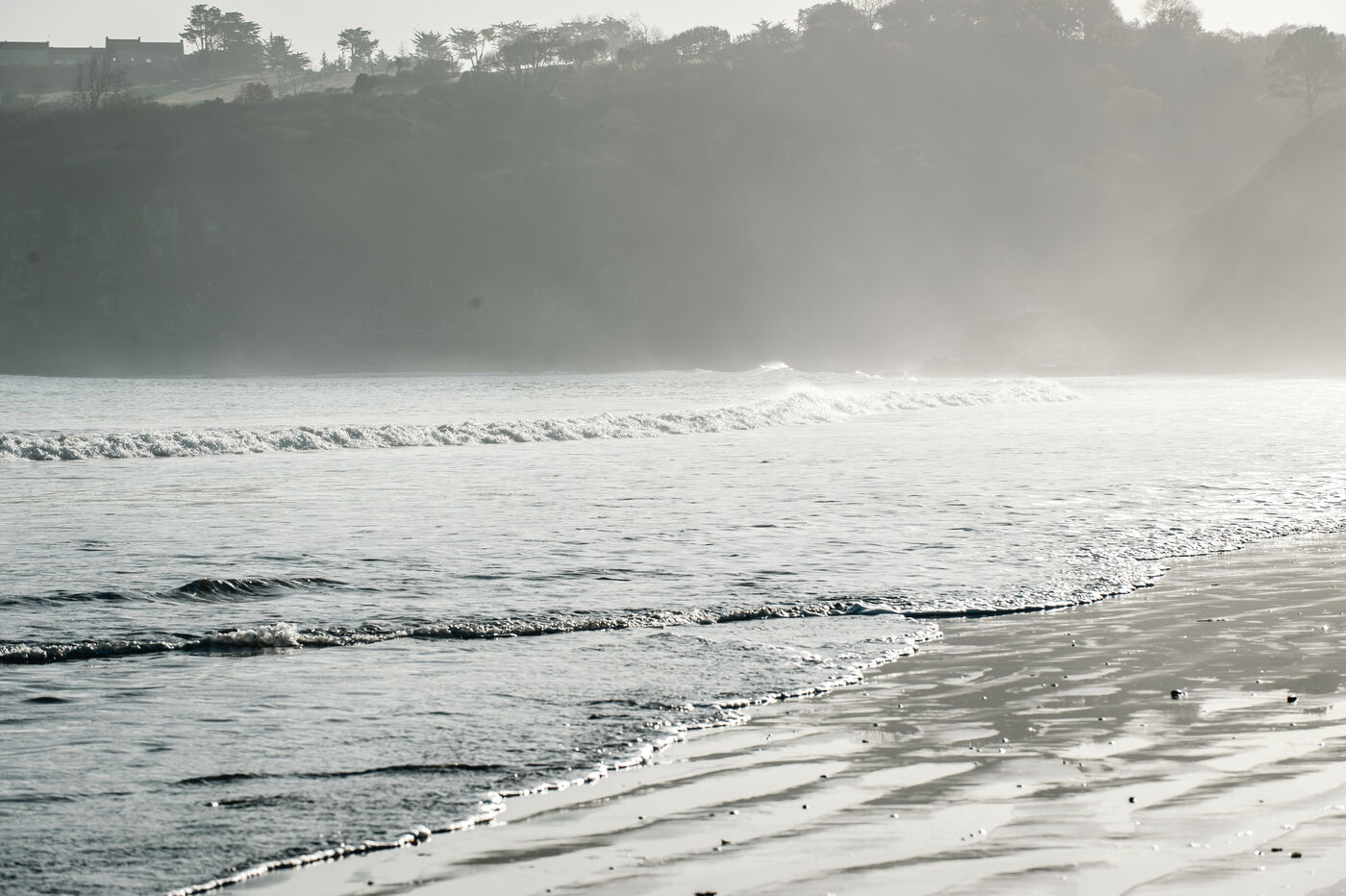 Paysages et rencontres à la plage du Vieux Bréhec à Plouha en Côtes d'Armor sous une lumière d'hiver et les embruns marins.