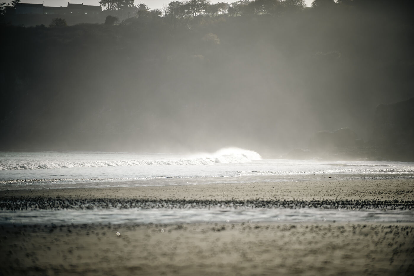 Landscapes and meeting at Vieux Bréhec beach in Plouha, Côtes d'Armor, bathed in winter light and sea spray.