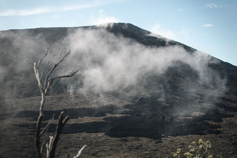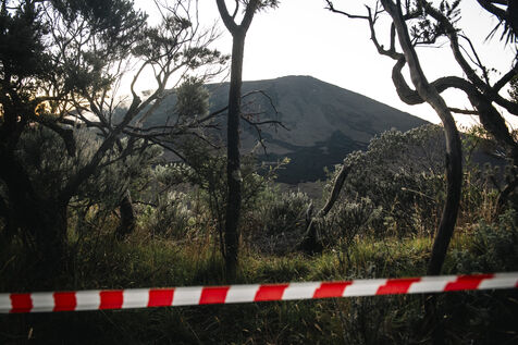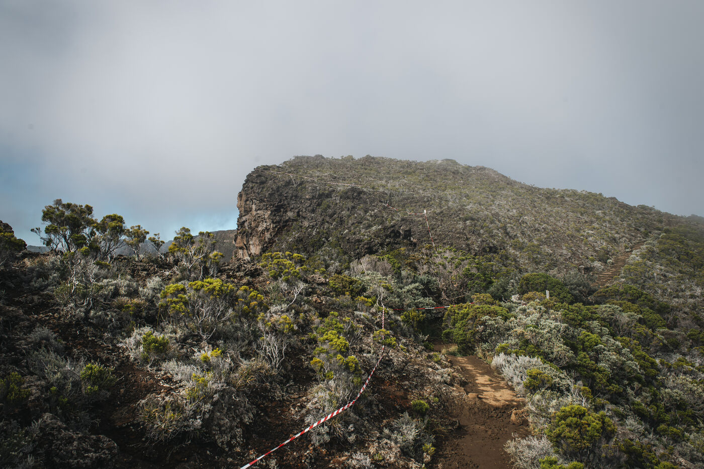 Parcours depuis le sentier menant au Piton de Partage peu après l'éruption de Piton de la Fournaise du 18 janvier 2025.