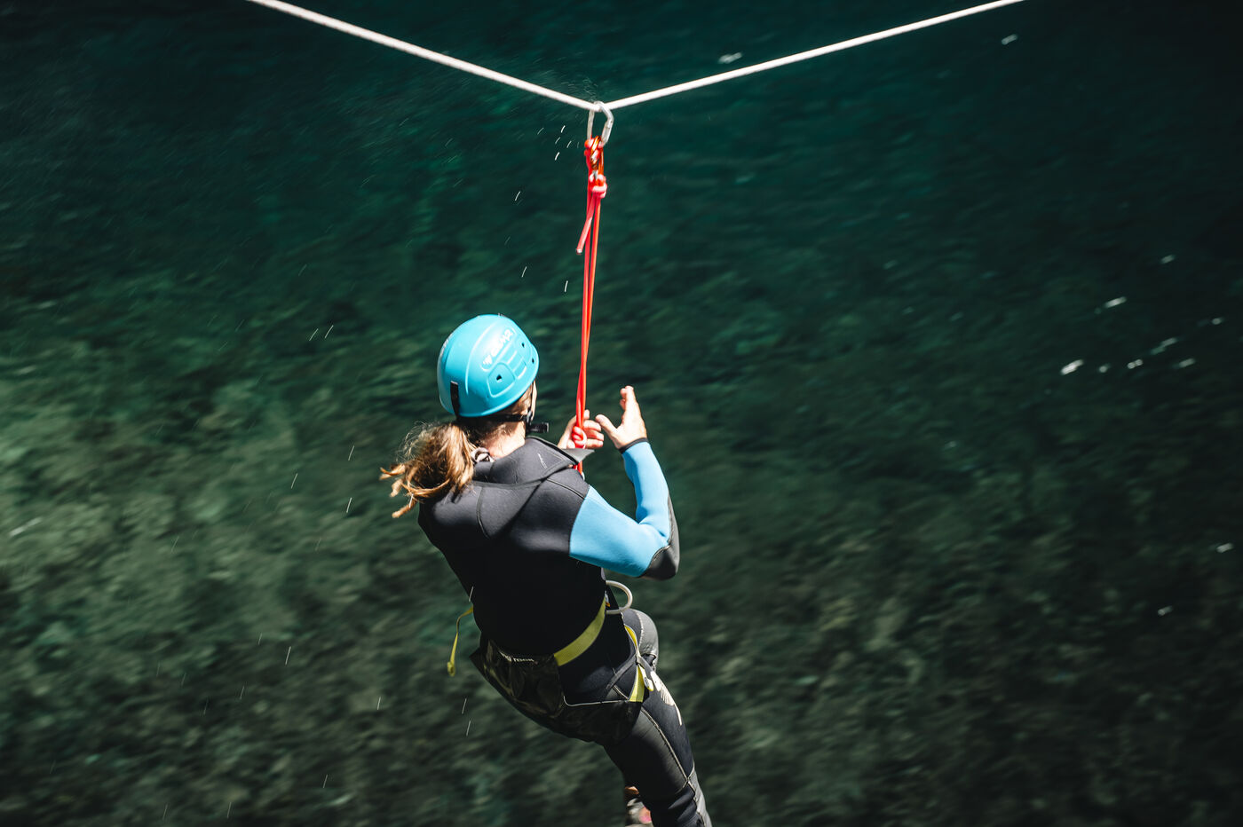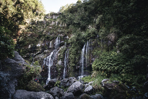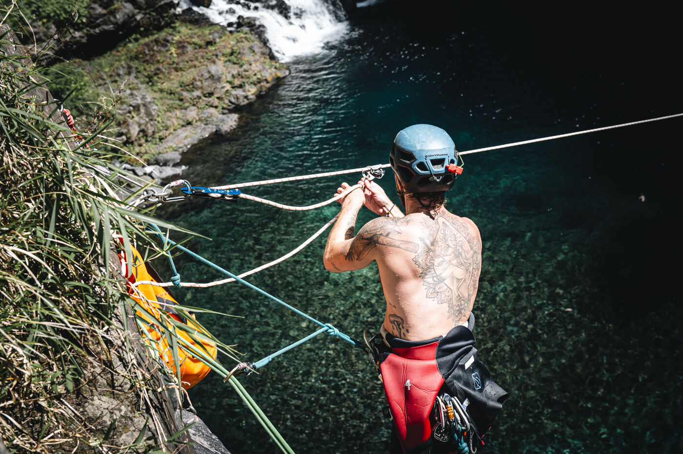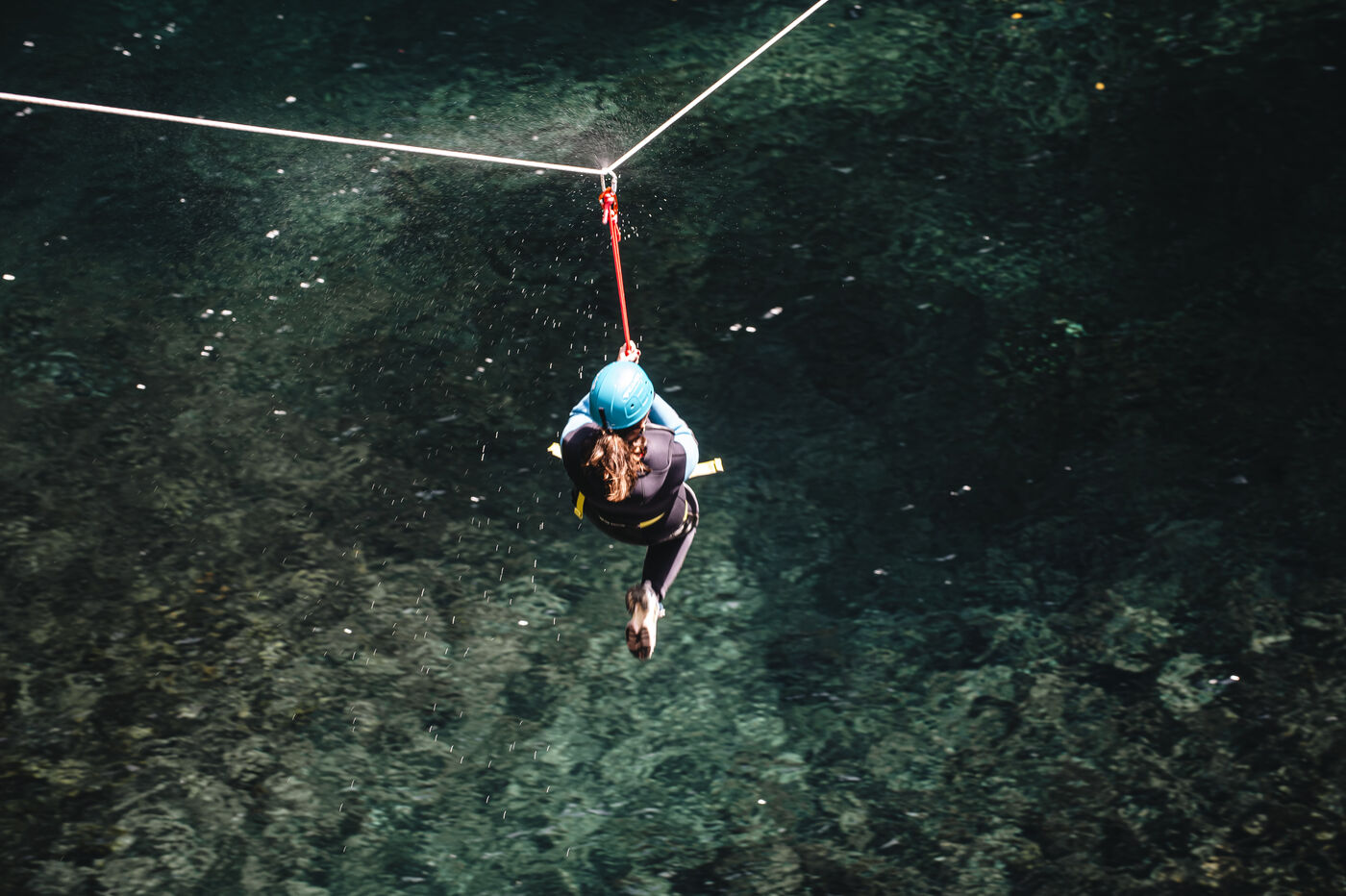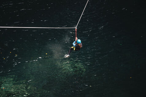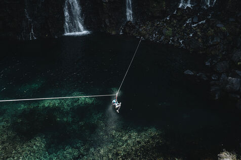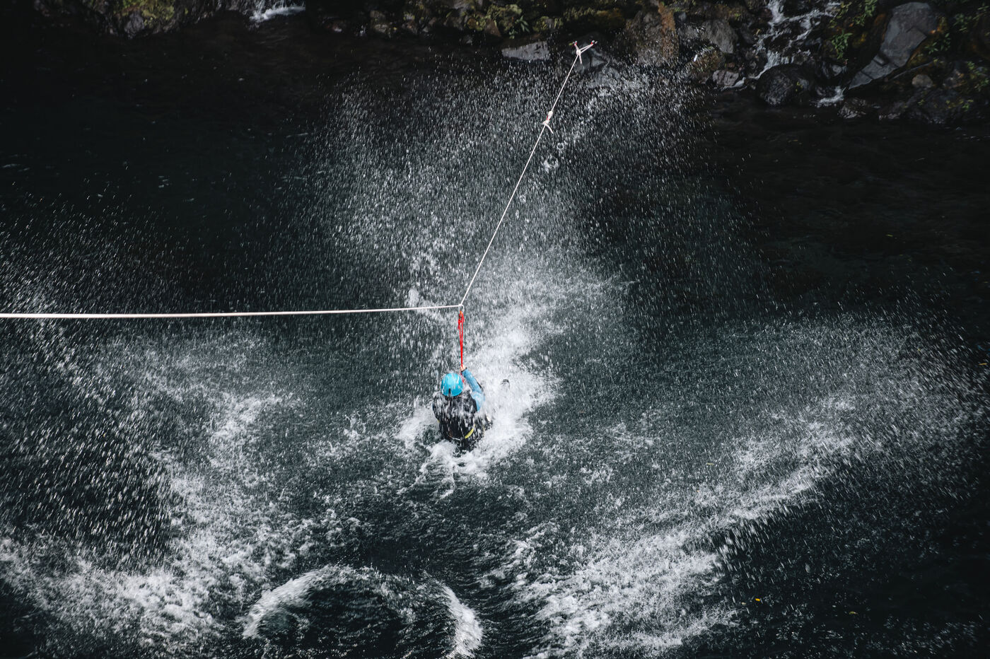 Introductory session to canyoning techniques: zip lines, slides, jumps, white water swimming in the heart of the Langevin canyon, in crystal clear water from volcanic springs.