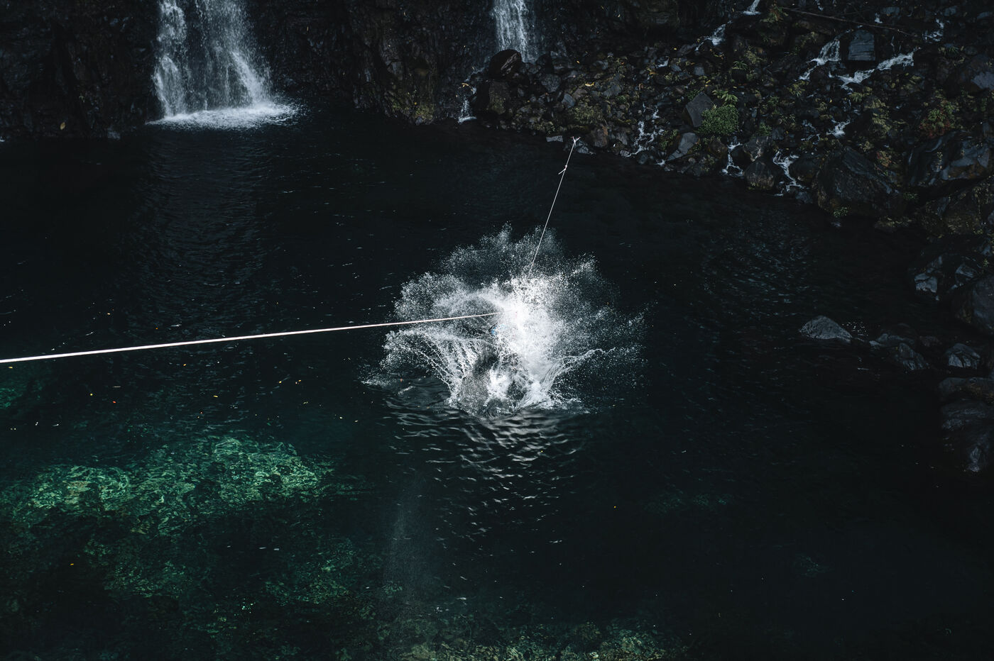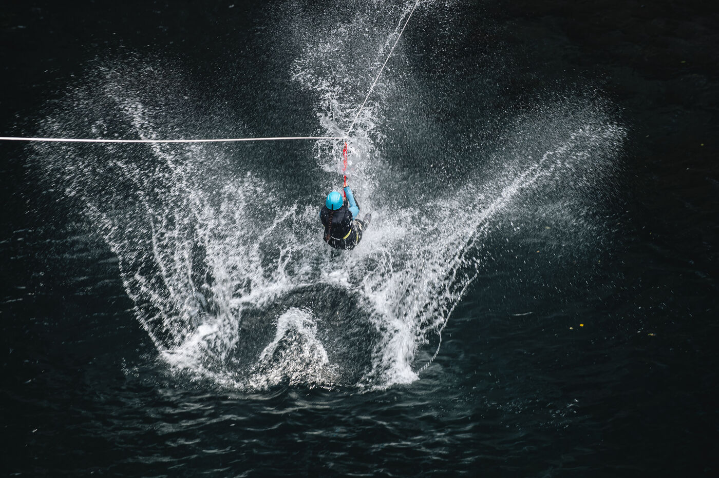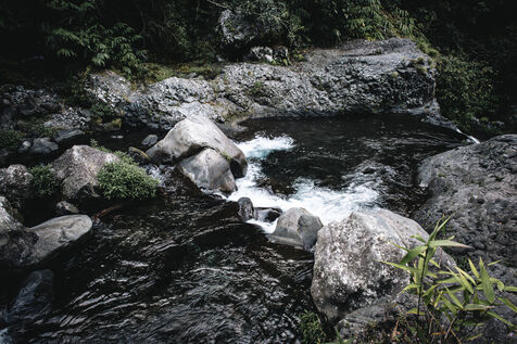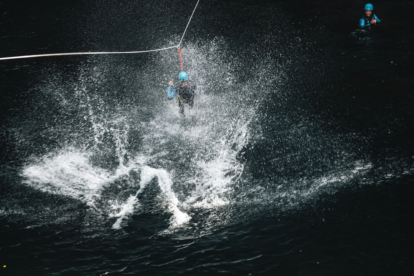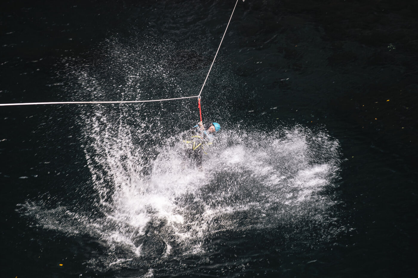 Introductory session to canyoning techniques: zip lines, slides, jumps, white water swimming in the heart of the Langevin canyon, in crystal clear water from volcanic springs.