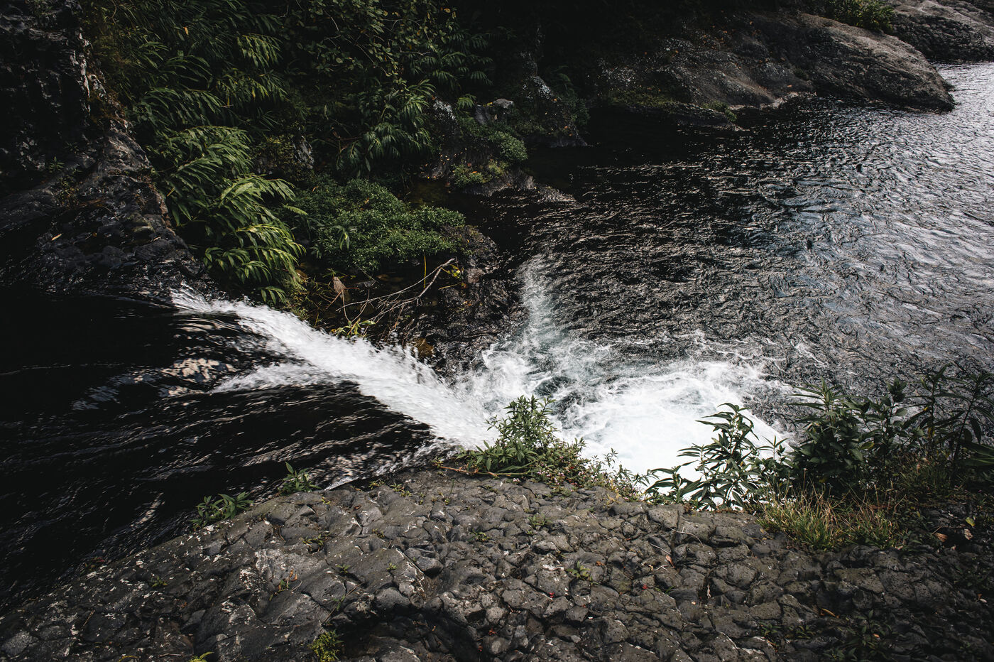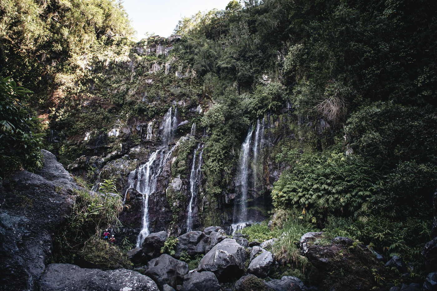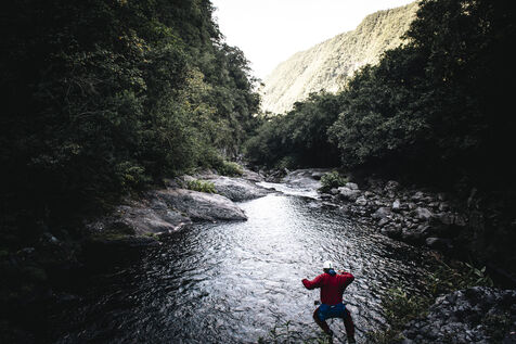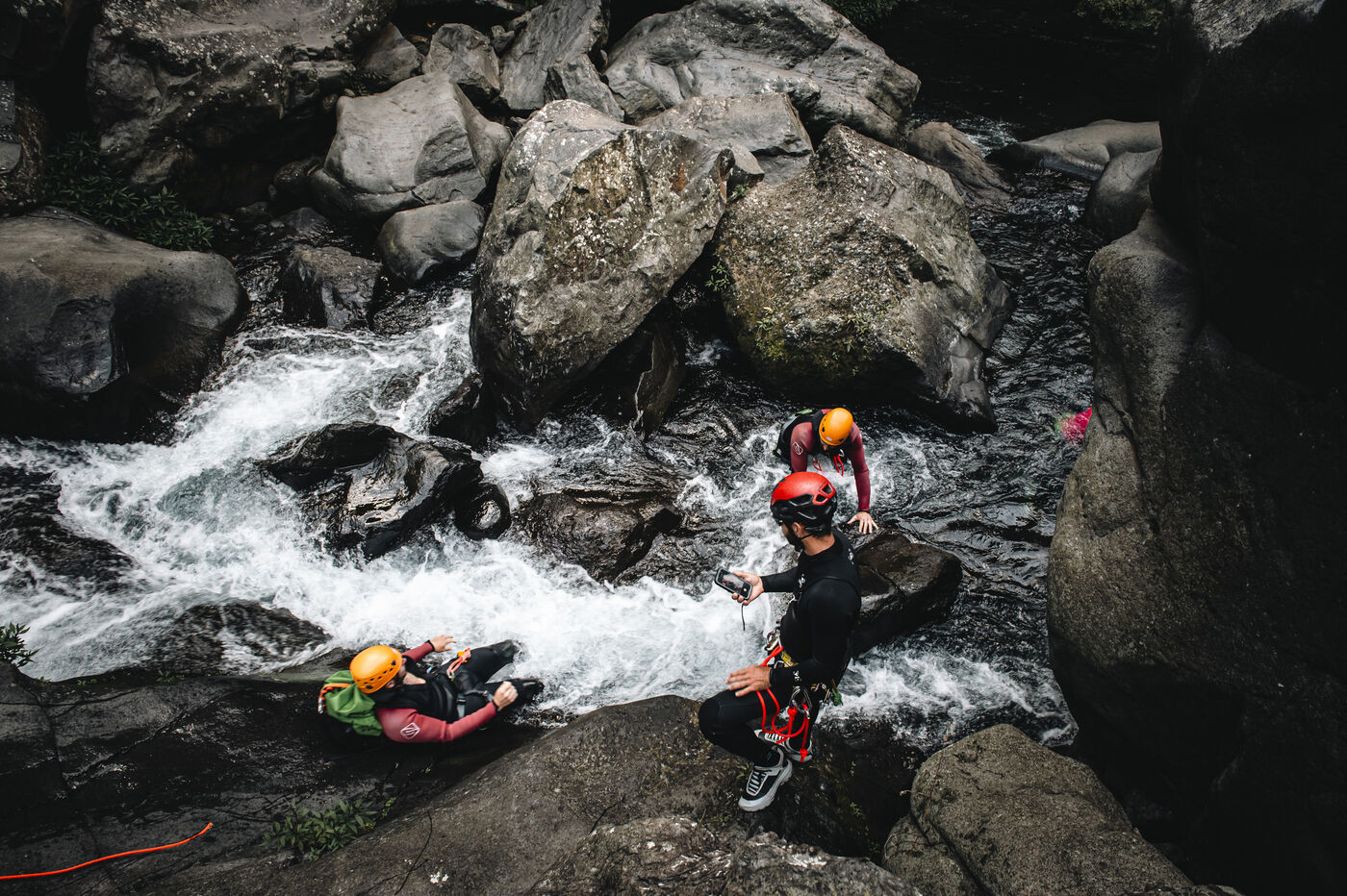 Séance d'initiation aux techniques de progression en canyon : tyrolienne, toboggans, sauts, nage en eau vive au coeur du canyon de Langevin, dans une eau cristalline issue des sources volcaniques.