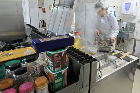 Pupils at a primary school in Niort, Deux-Sèvres, have lunch in the canteen. They choose their dish, eat and finally sort the waste before putting down their cutlery.
