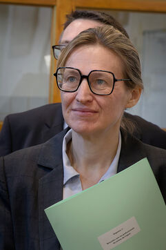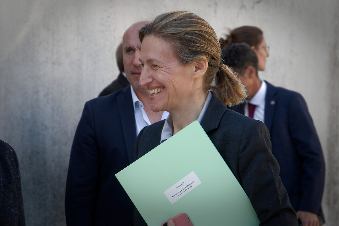 Astrid Panosyan-Bouvet, the French Minister for Labour and Employment, came to Sireuil in the Charente region of France to visit a cognac distillery and talk to those involved in the industry, which is being tormented by the international situation, including customs duties.