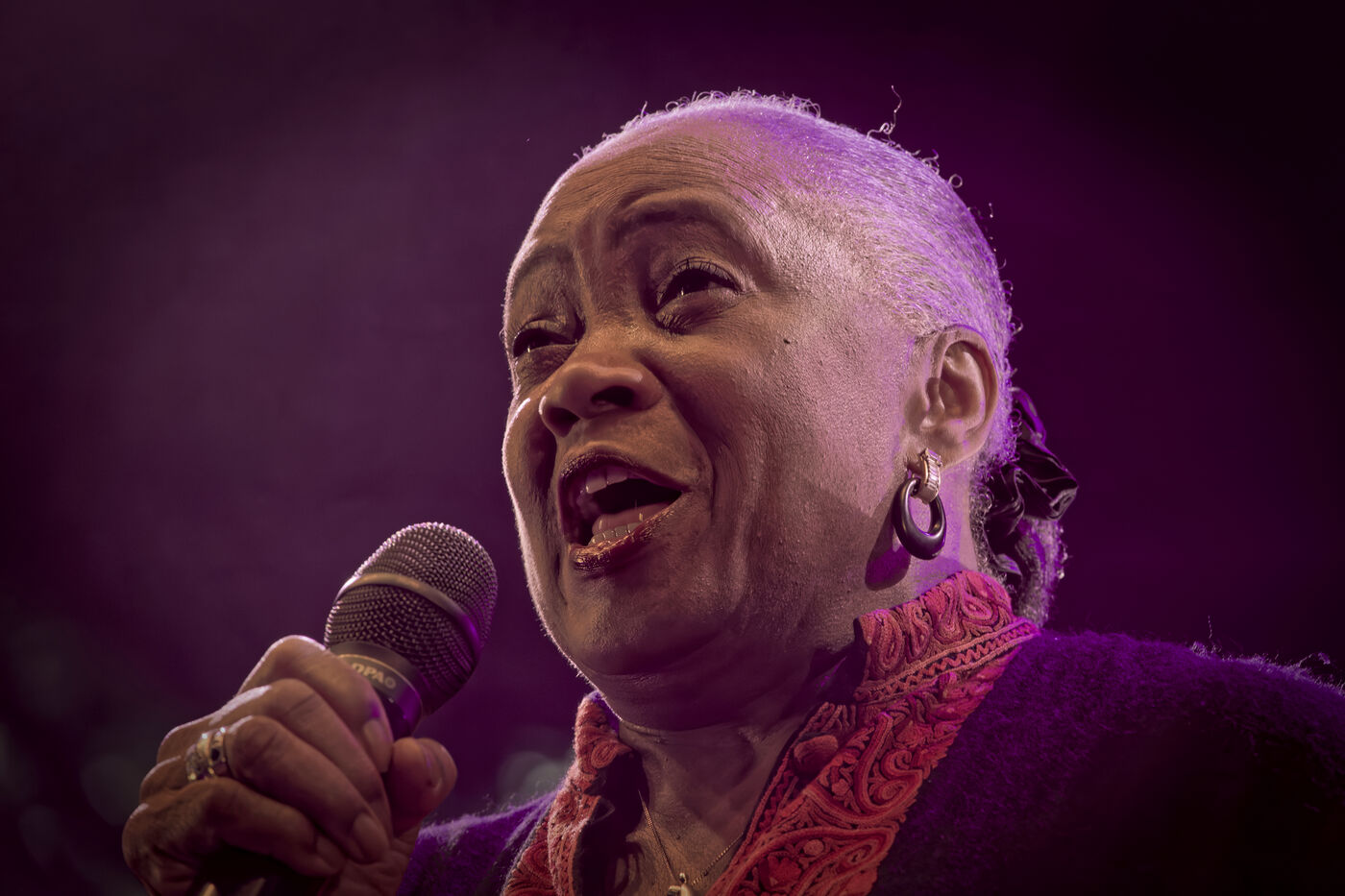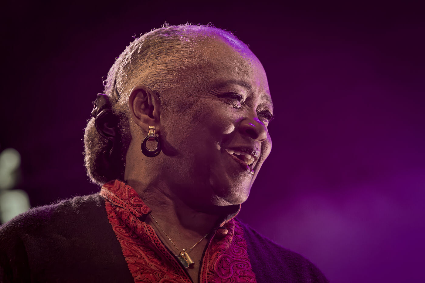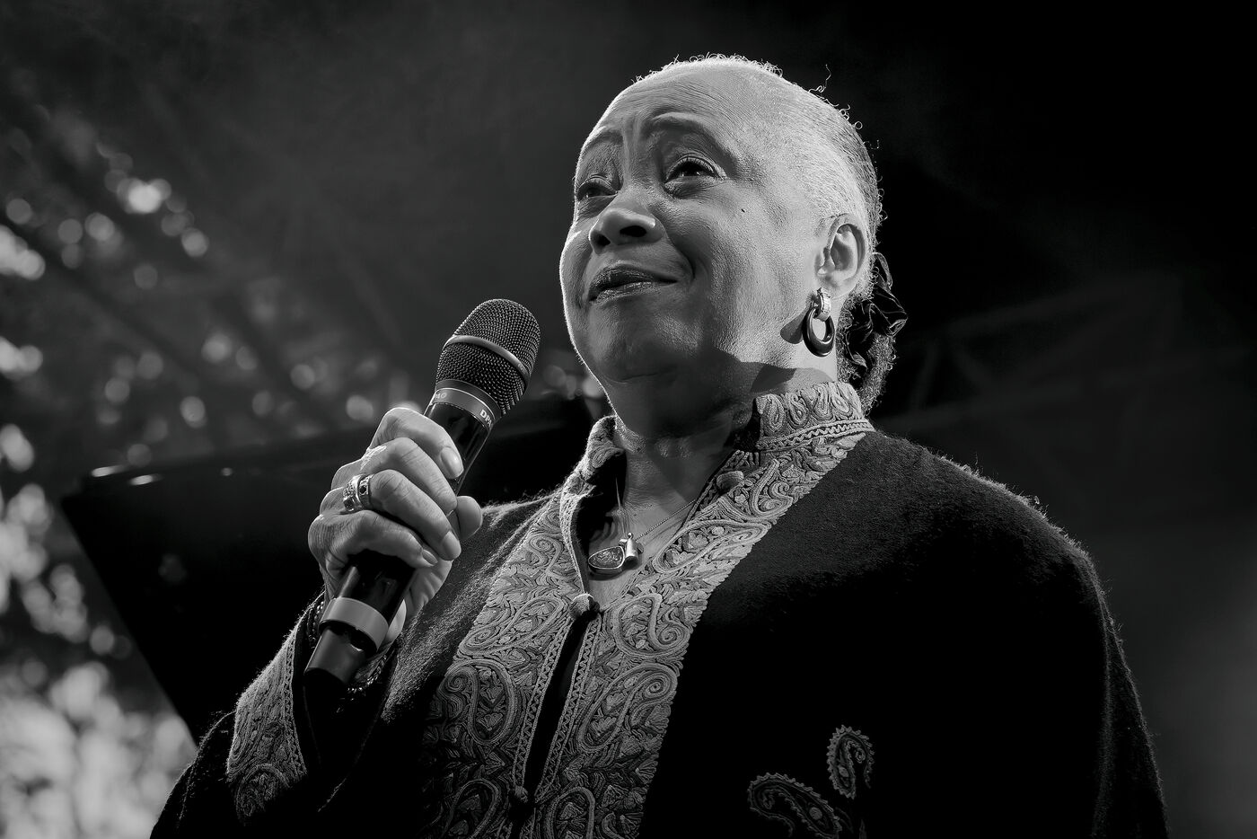 Portrait de la cantatrice Barbara Hendricks et son blues band sur la scène du festival Cognac Blues Passion à Jarnac le 2 juillet 2025.