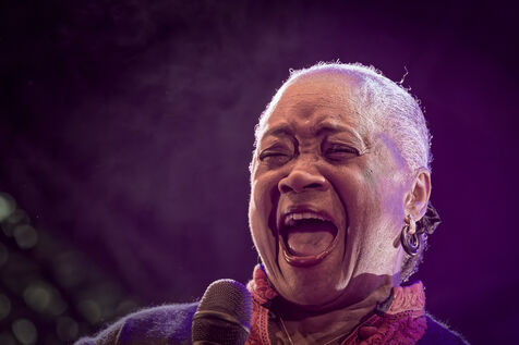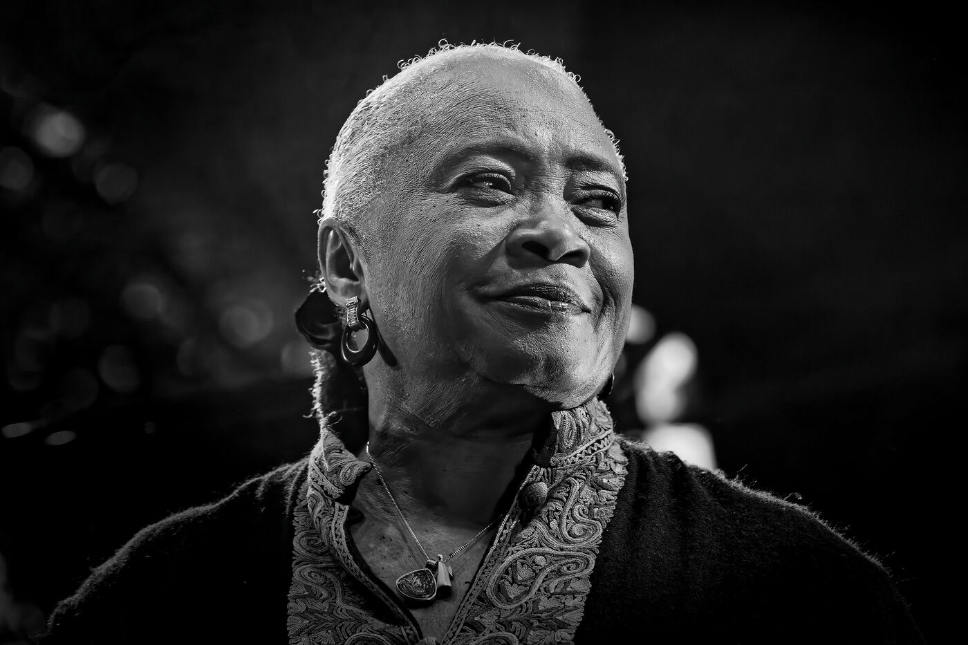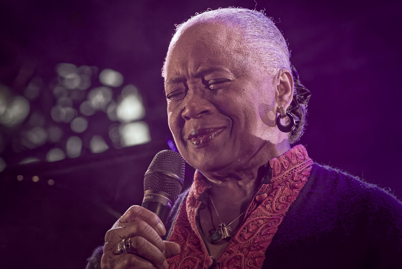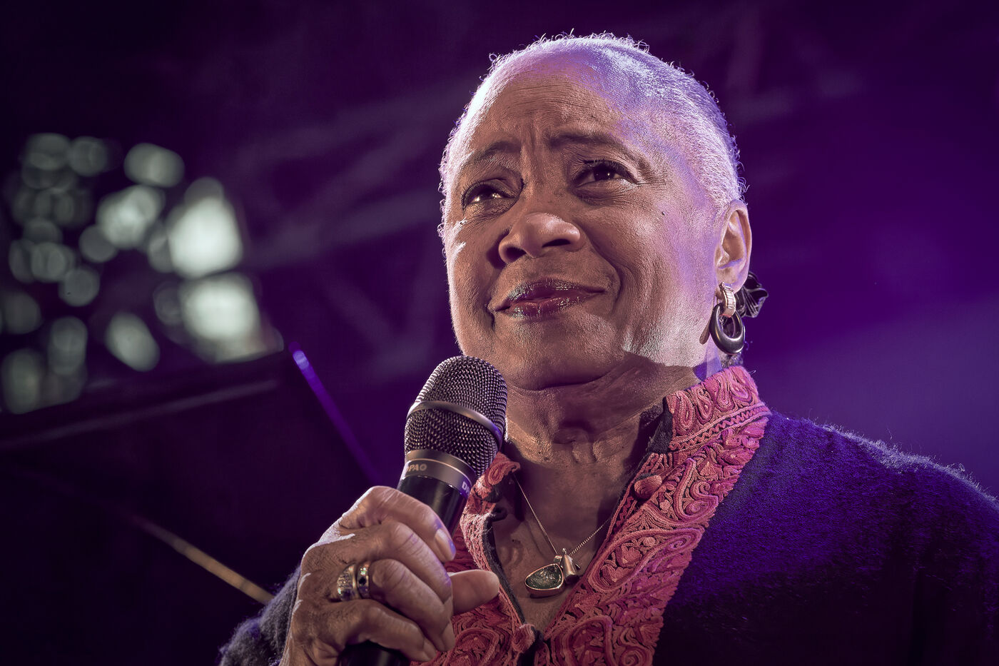 Portrait de la cantatrice Barbara Hendricks et son blues band sur la scène du festival Cognac Blues Passion à Jarnac le 2 juillet 2025.