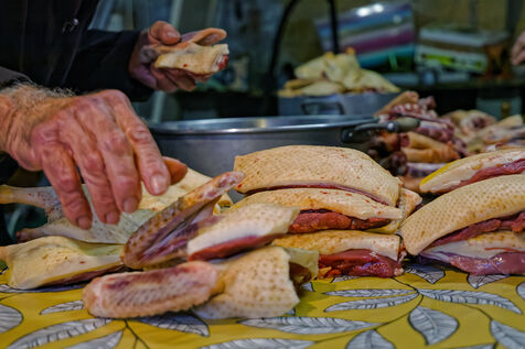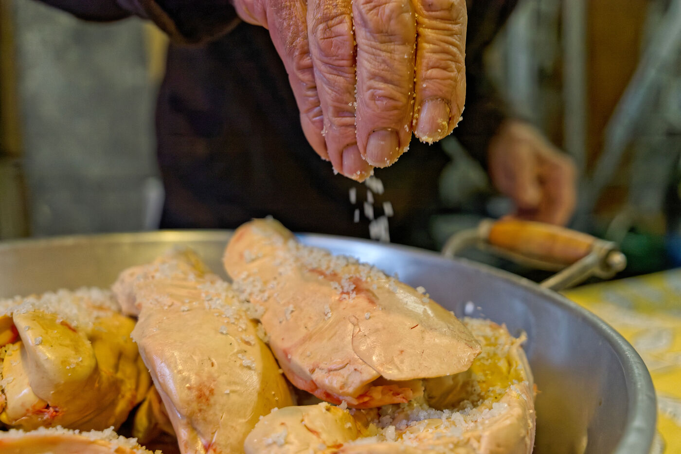 In Bearn, in the heart of south-western France's gastronomic region, duck is cooked as a family affair. Foie gras, wings, duck breast and stuffed neck confit are prepared using the finest ingredients.