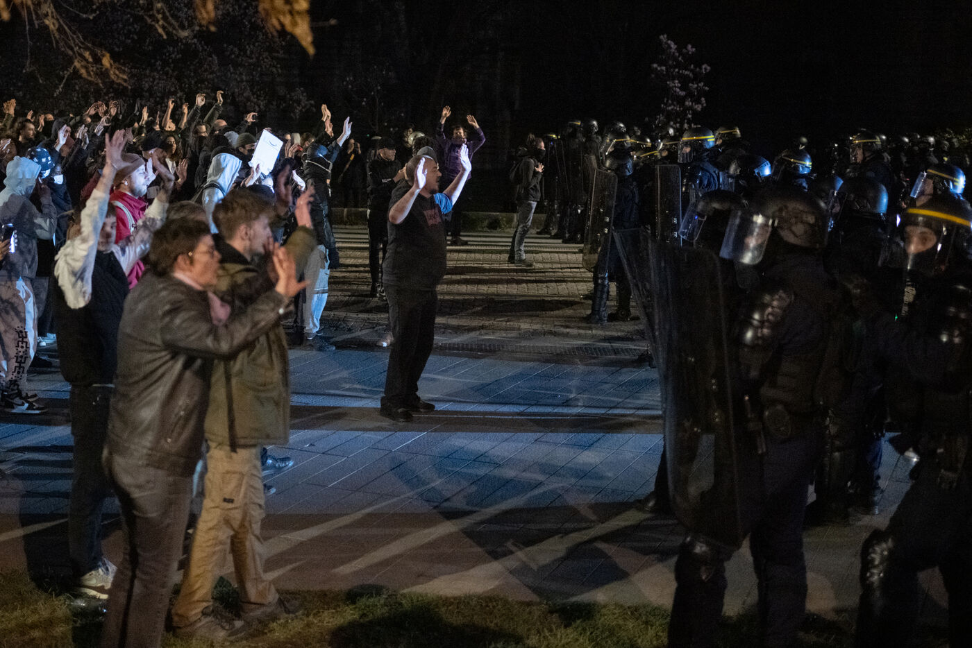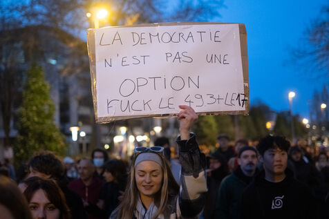 Opponents of pension reform called for a demonstration in Nantes following the rejection of motions of no confidence by the Rassemblement National and the LIOT group following the government's use of Article 49.3 to pass the bill without a vote in the National Assembly. Some rubbish fires were set by the demonstrators.