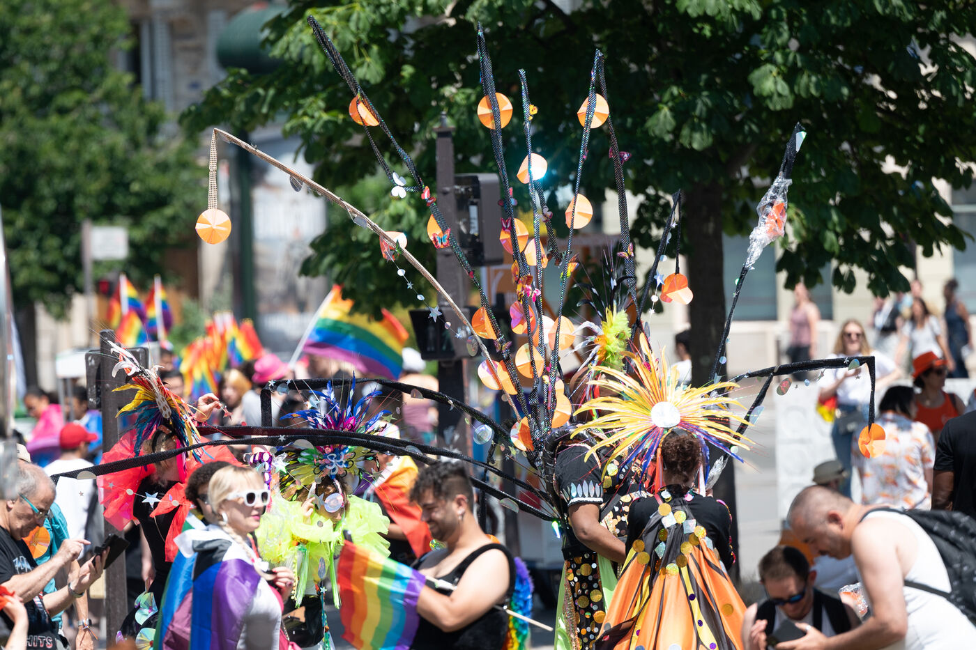 L'édition 2023 de la Marche des Fiertés Paris Ile-de-France organidée par l'Inter-LGBT a réunit des milliers de personnes pour la défense des personnes LGBTQIA (Lesbienne, gaies, bissexuel(le)s, transgenres intersexes et asexuelles). Cette année, le cortège a défilé entre Nation et République sans chars pour des raisons environnementales.