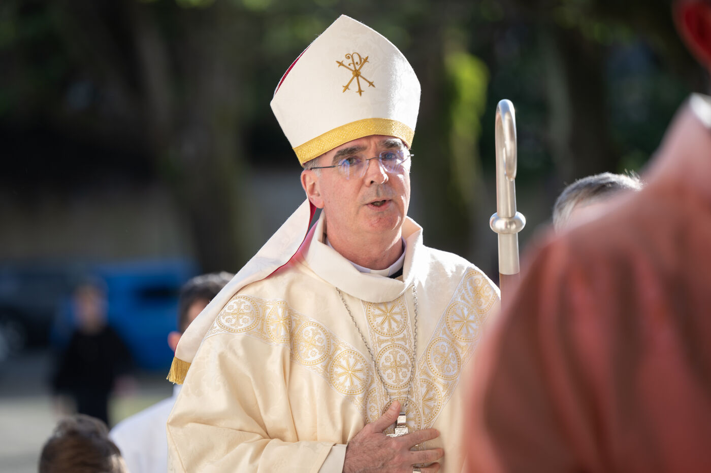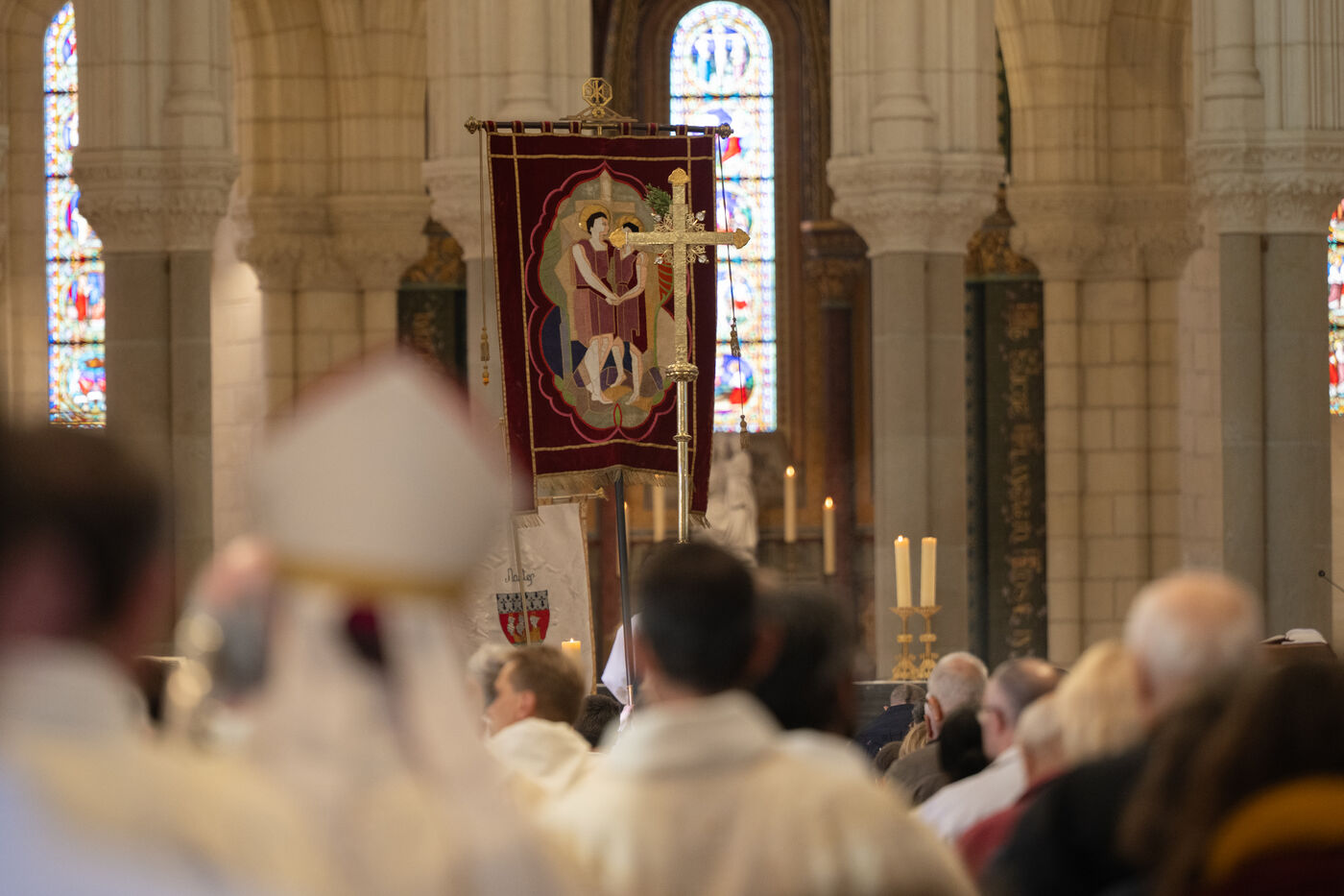 Monsignor Percerou, Bishop of Nantes (France), celebrated mass in the Basilica of Saint-Donatien on Wednesday 23 April 2025 to commemorate the pontificate of Pope Francis (Jorge Bergoglio), who died in the Vatican on 21 April 2025. Many faithful attended the service to pay their last respects to the pontiff, who died at the age of 88.