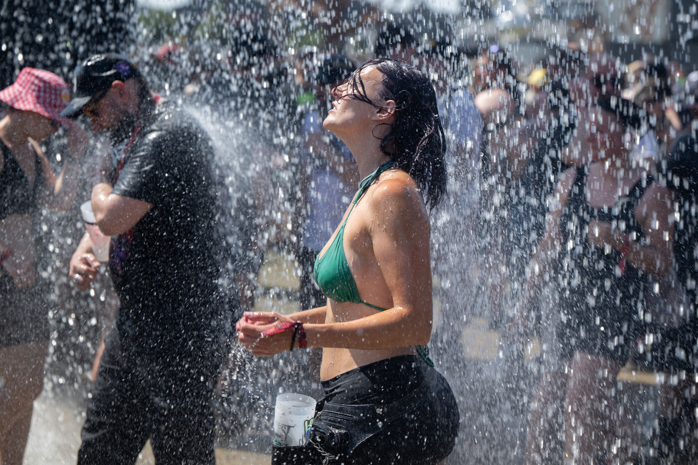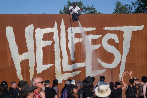 With the heatwave sweeping across the Loire-Atlantique region, Hellfest volunteers are spraying festival-goers with water to cool them down. Photo taken on 20 June 2025 in Clisson.