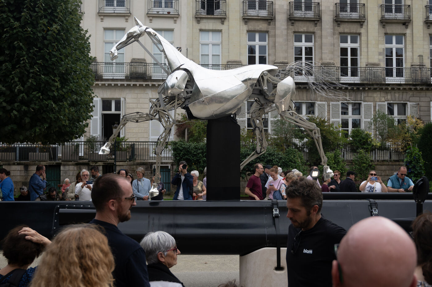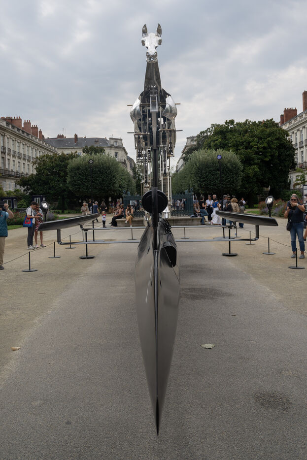 De nombreux nantais sont venus admirer Zeus, le cheval métallique qui a parcouru la Seine durant la cérémonie d'ouverture des Jeux Olympiques de Paris 2024. La sculpture est exposée du 19 au 28 septembre 2025 cours Cambronne à Nantes où elle a d'ailleurs été conçue par l'atelier Blam.