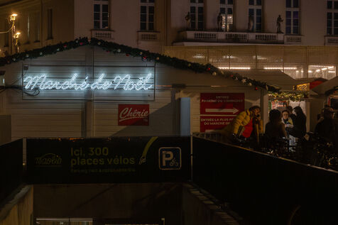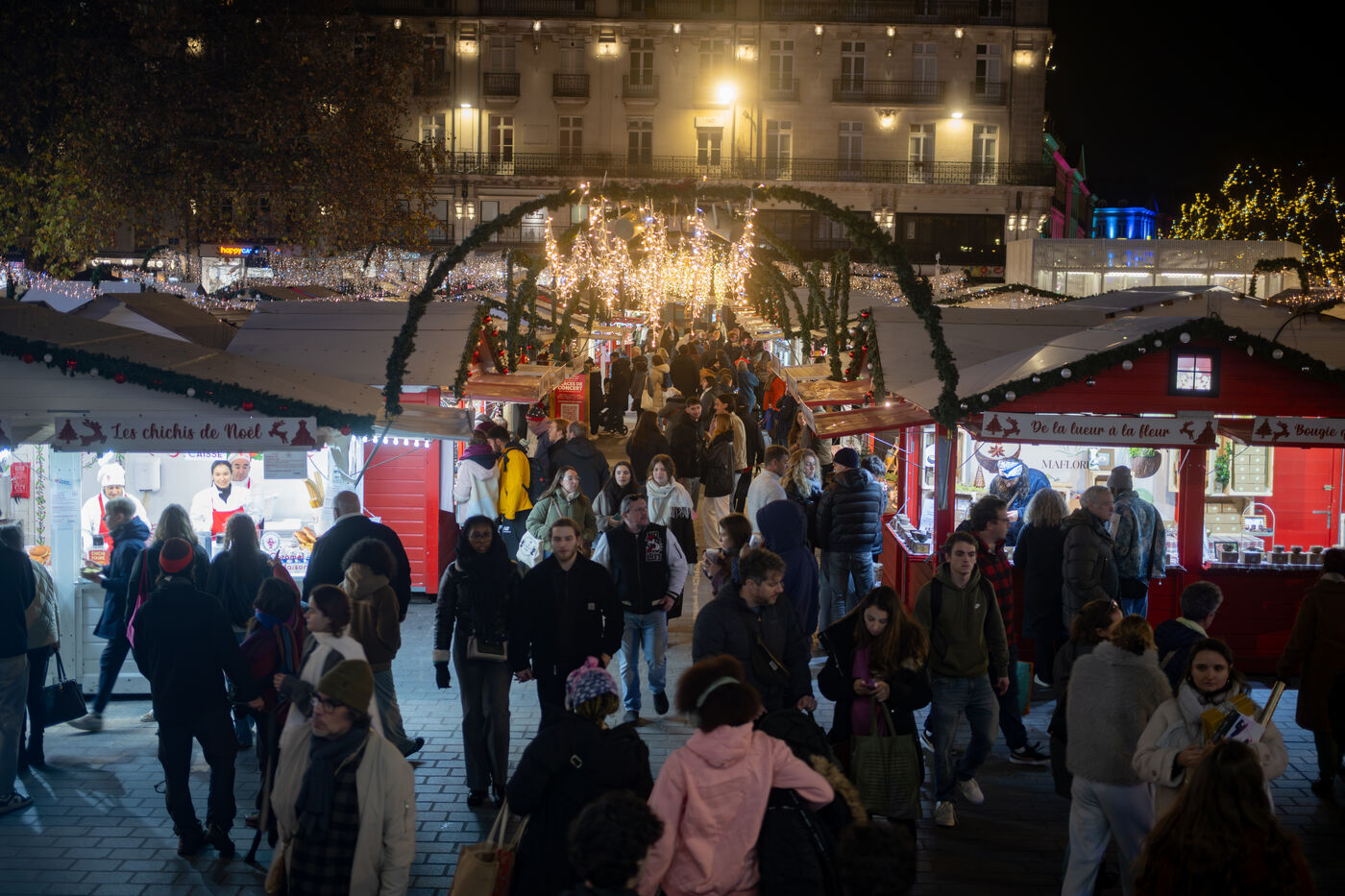 Ambiance festive dans les rue de Nantes (France) à l'occasion des fêtes de fin d'année.