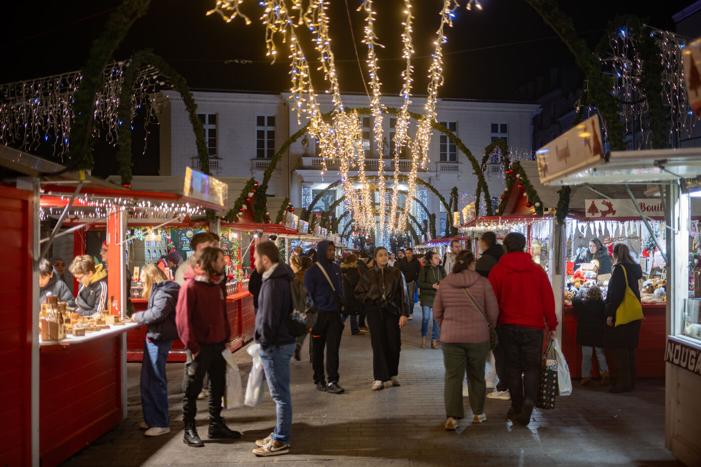 Festive atmosphere in the streets of Nantes (France) during the end-of-year celebrations