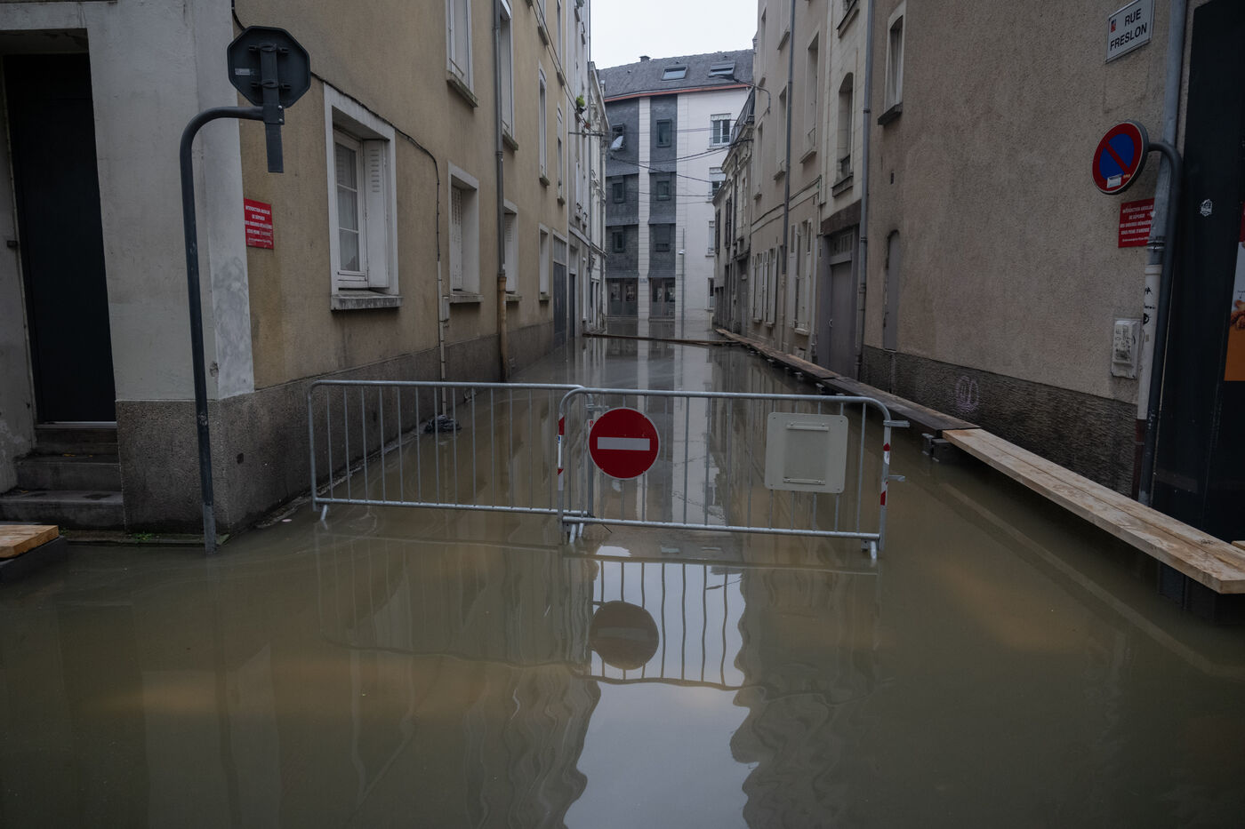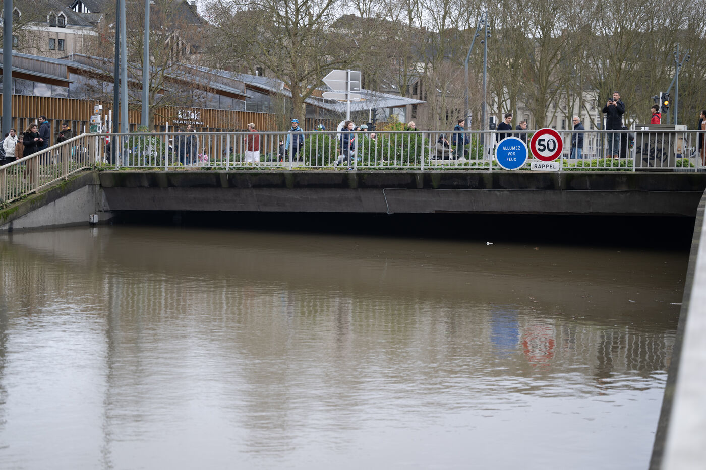 Samedi 21 février 2026, Angers (France) subissait encore des inondations dans les rues bordant la Maine qui présente une crue majeure. Le département du Maine-et-Loire et d'ailleurs maintenue en vigilance rouge pour crues/inondations par Vigicrues qui précise que la situation devrait perdurer quelques jours.