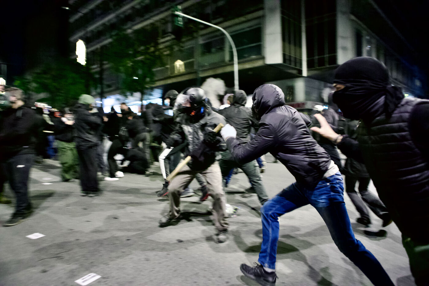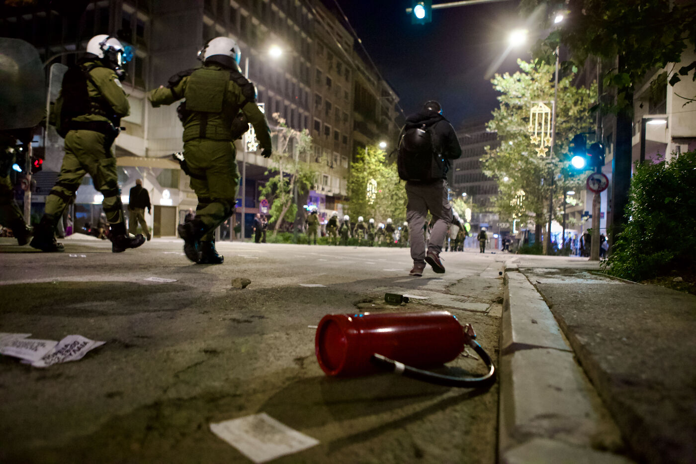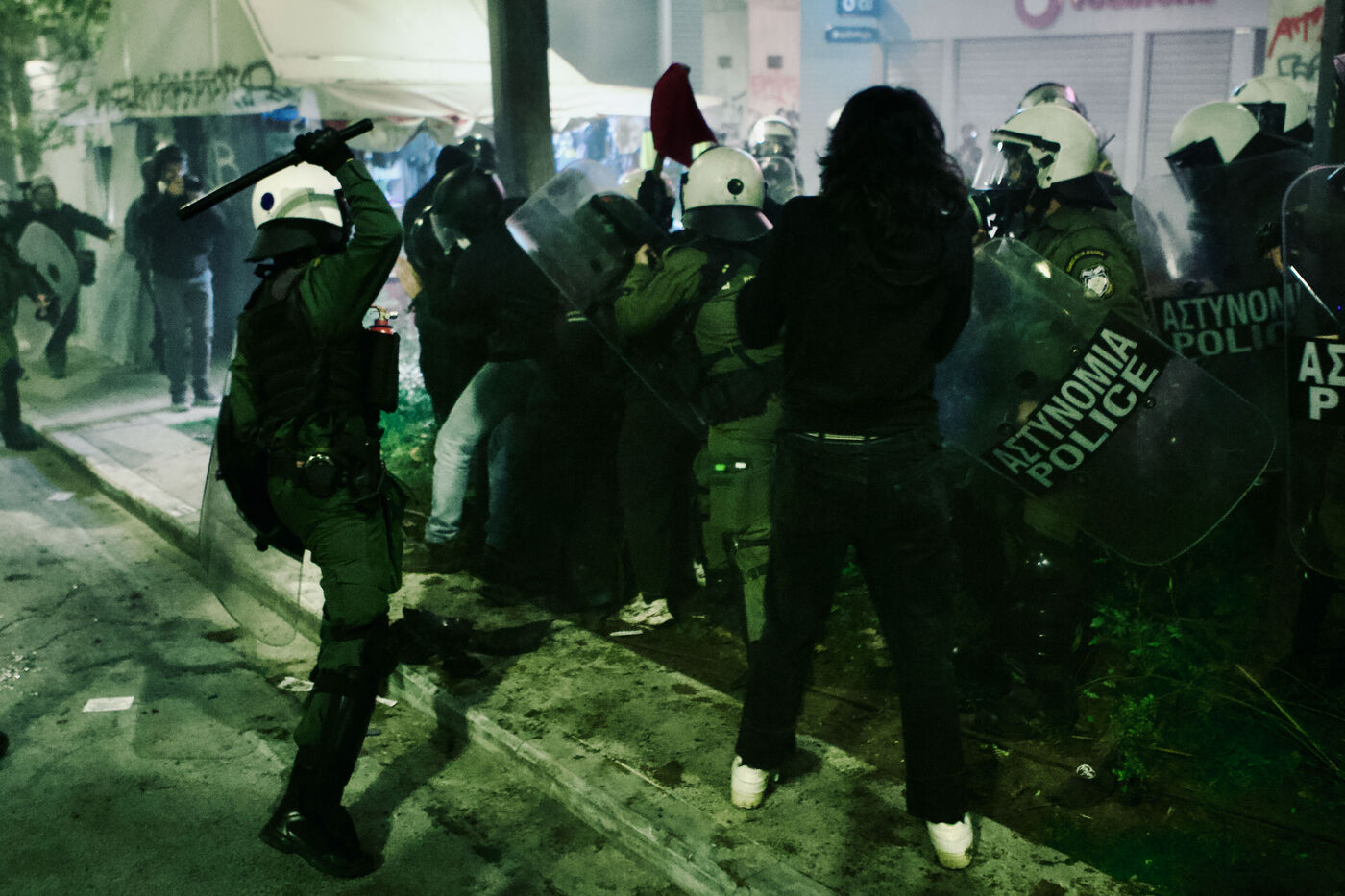À la tombée de la nuit, les forces de l’ordre ont mené une intervention violente rue Benaki, visant des manifestants anarchistes et déclenchant des affrontements impliquant les unités antiémeutes, l’usage de boucliers, de matraques et de moyens de dispersion. La confrontation a mis en lumière les tensions persistantes entre les forces de sécurité de l’État et les groupes anti-autoritaires, ainsi que les préoccupations plus larges de la société grecque concernant la responsabilité et l’impunité policières.