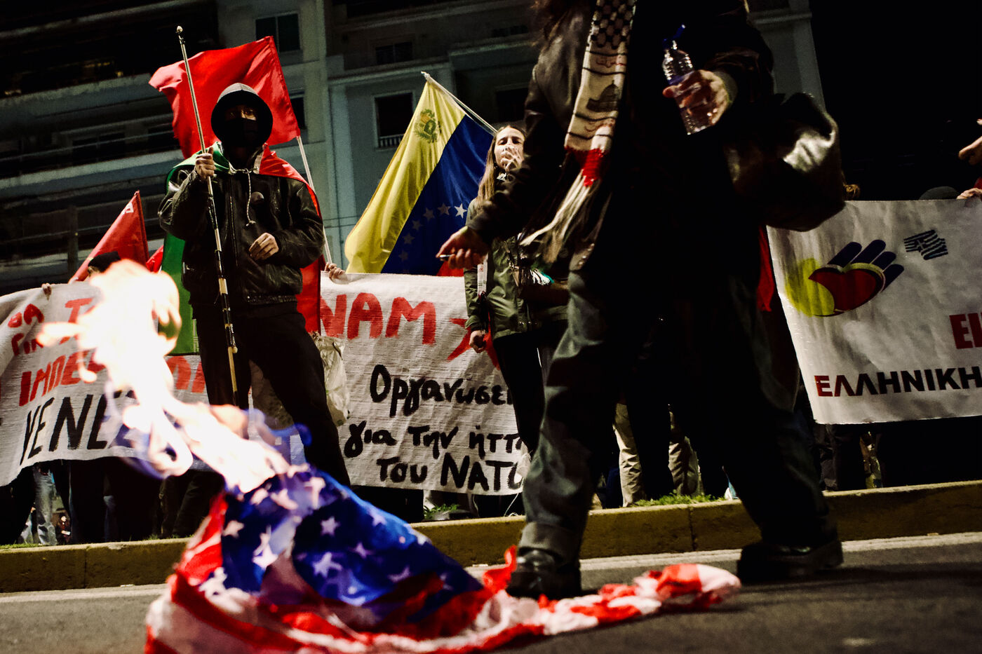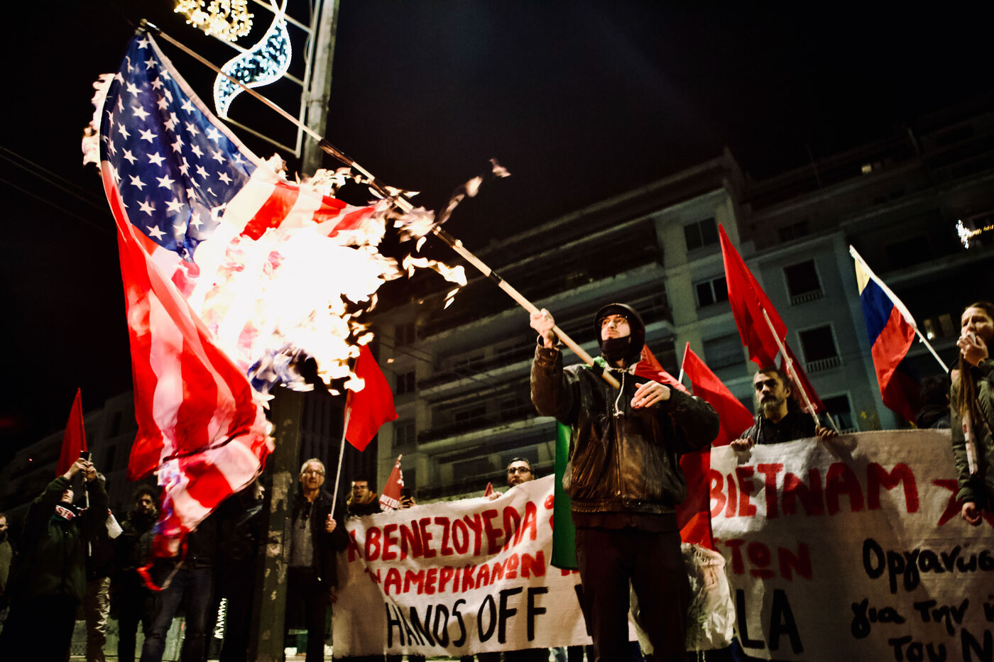 On January 3, 2026, protesters assembled outside the U.S. Embassy in Athens, expressing opposition to U.S. military actions in Venezuela. Participants waved Venezuelan and communist flags, chanted slogans, and staged symbolic actions, including flag-burning, to convey their political message. Greek riot police monitored the perimeter, ensuring security around the diplomatic compound. The demonstration highlighted the solidarity of leftist groups and activists against foreign military intervention.