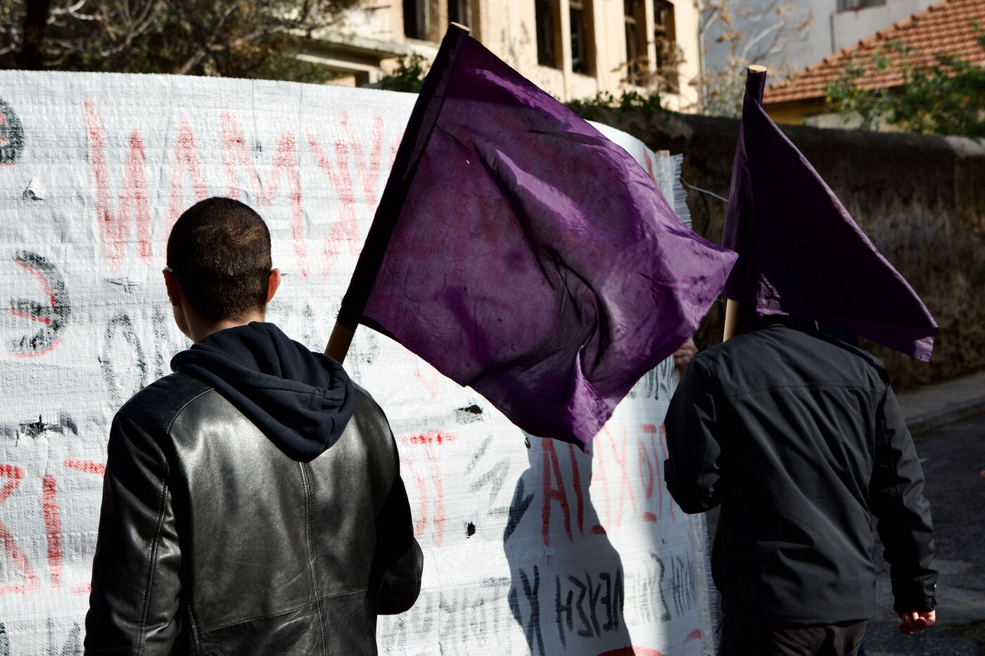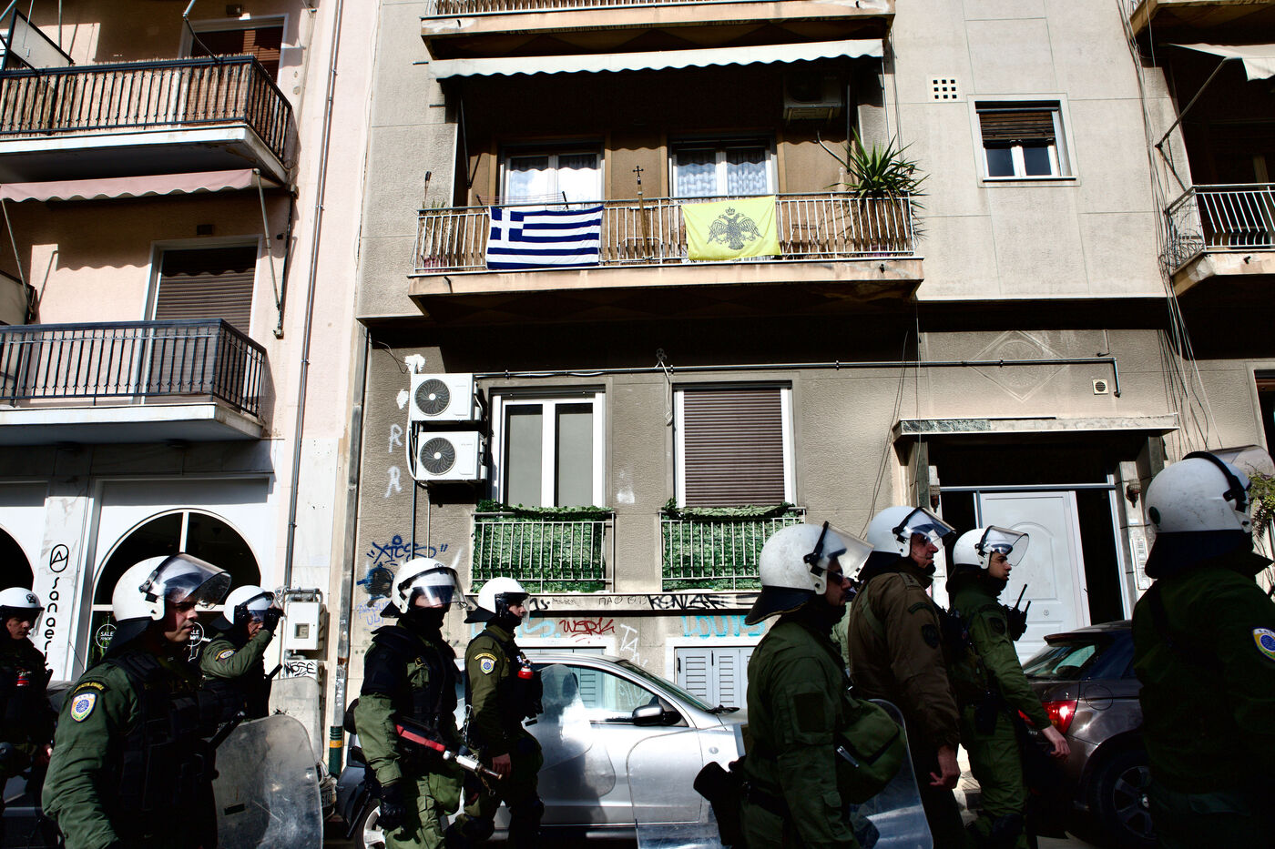 Le rassemblement a réuni militants, travailleurs et organisations politiques, sous une forte présence policière. Banderoles, drapeaux et slogans dénonçant le fascisme et le racisme ont marqué le cortège dans ce quartier urbain résidentiel de la capitale grecque.