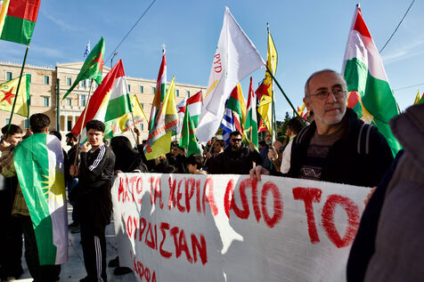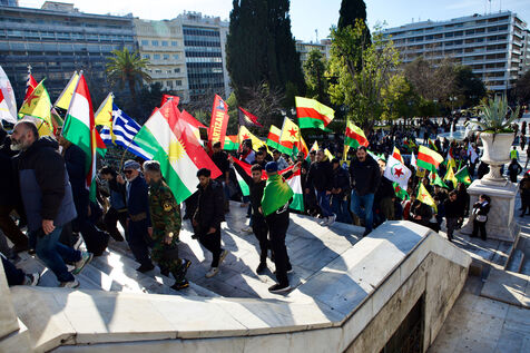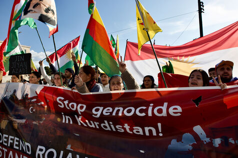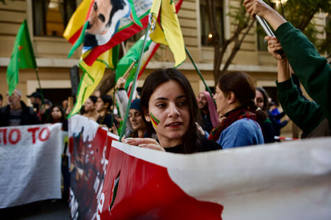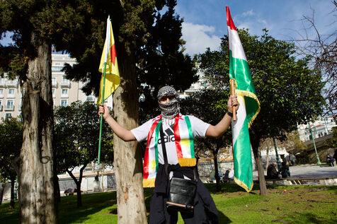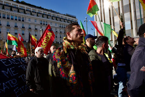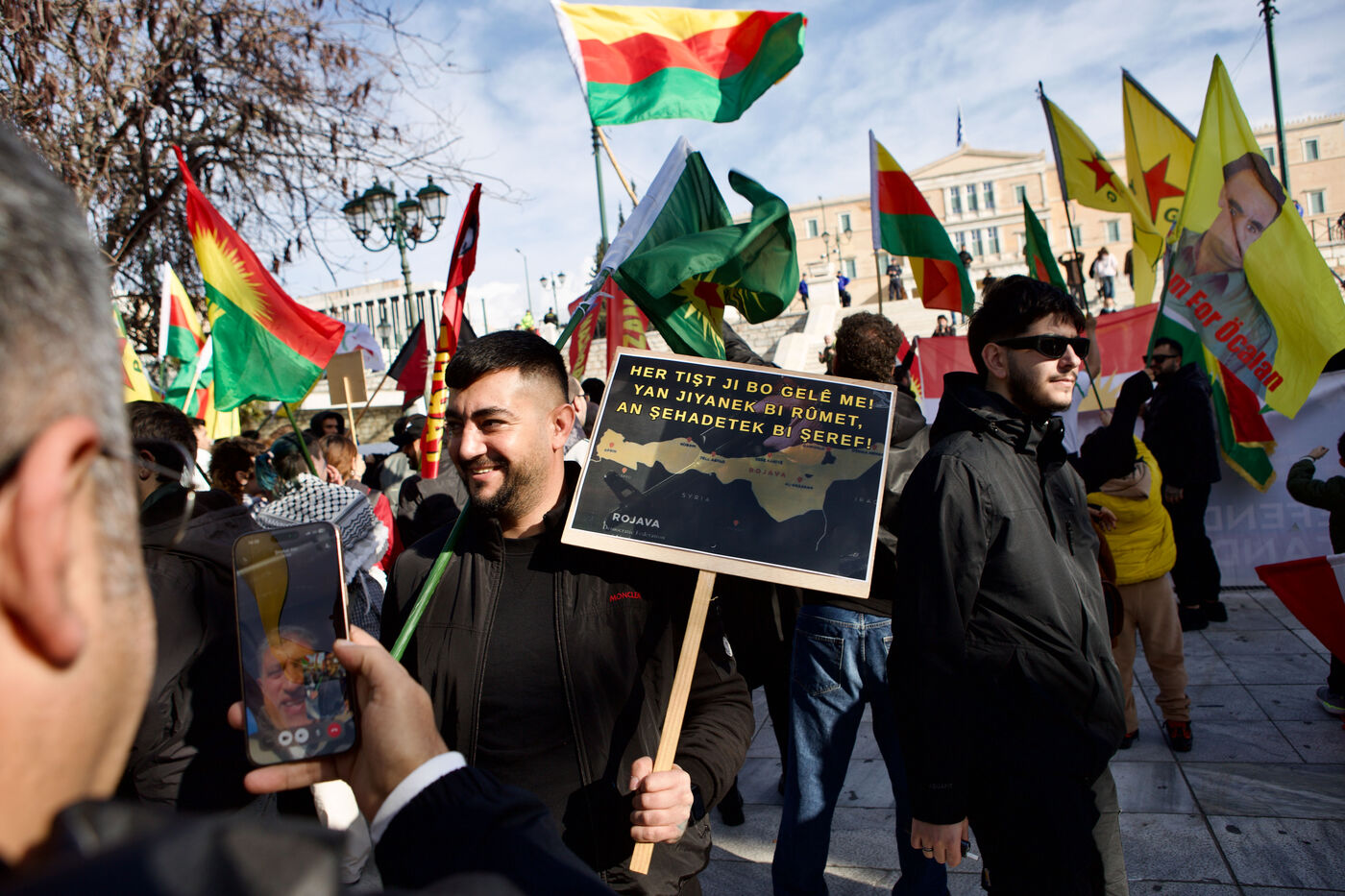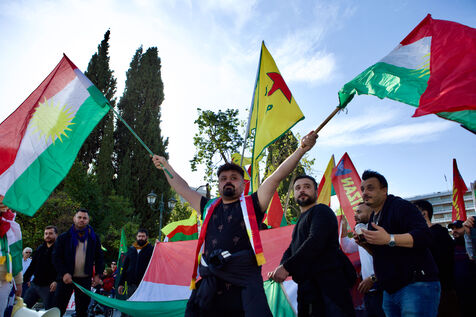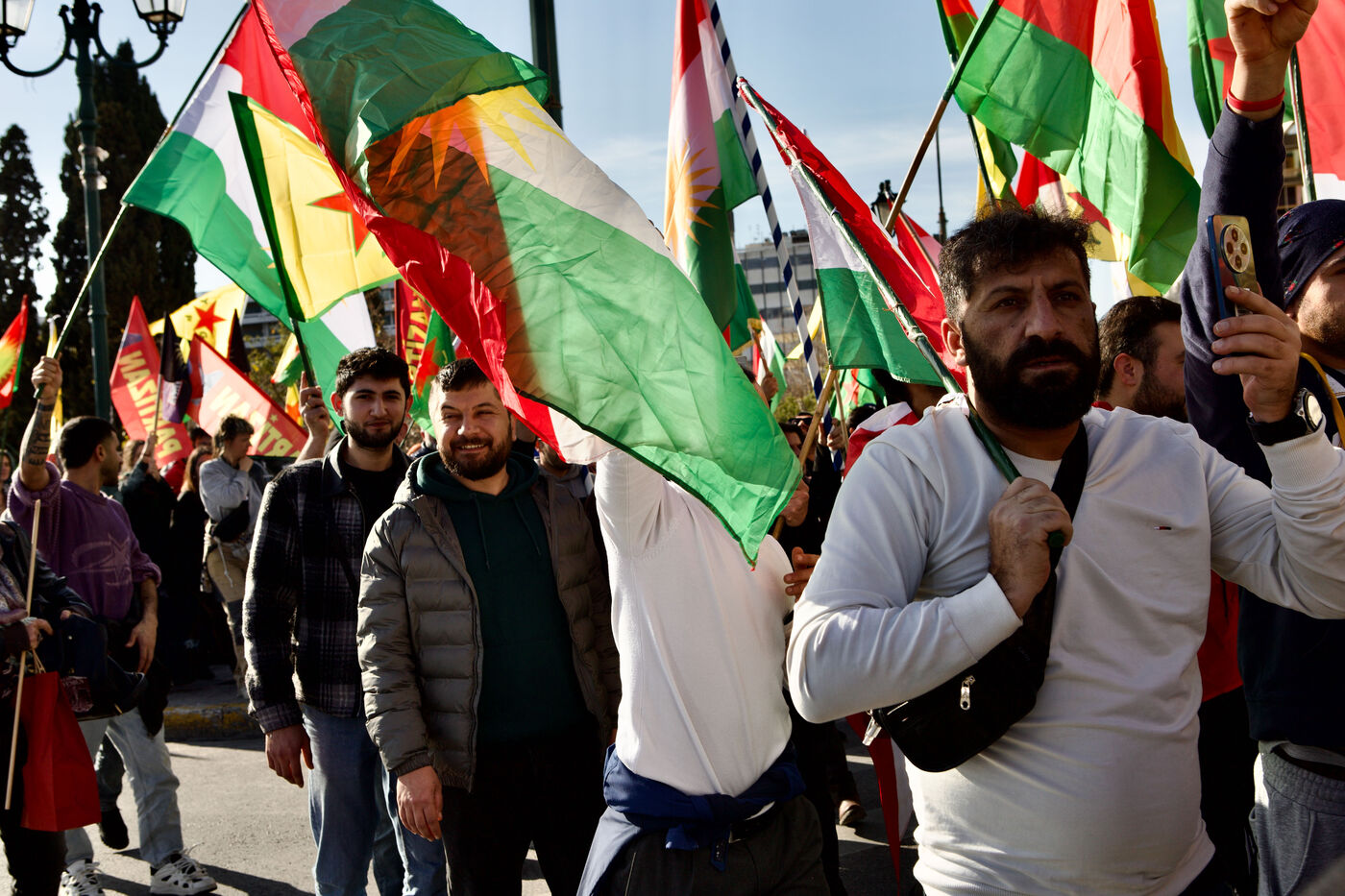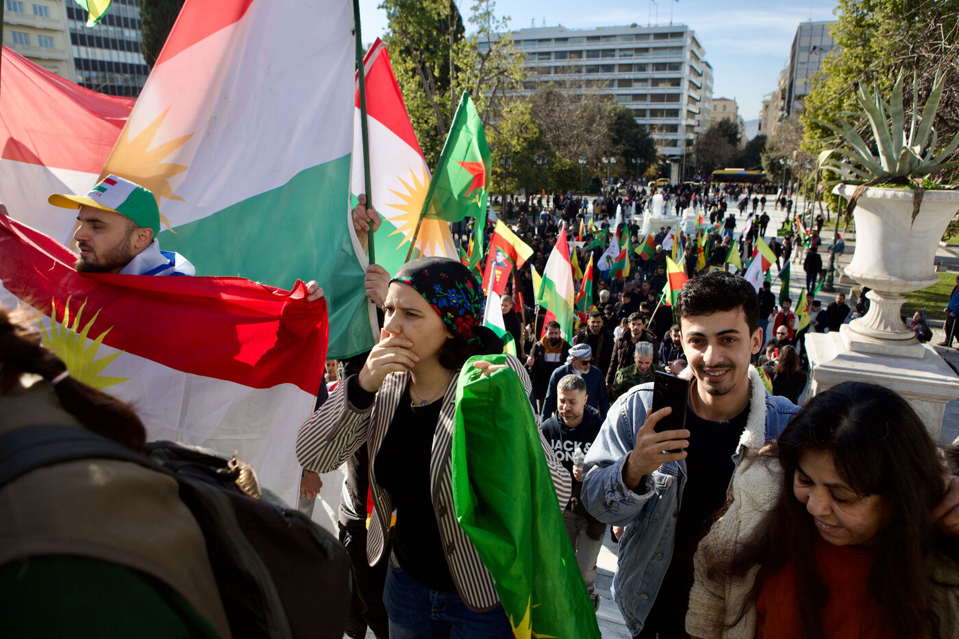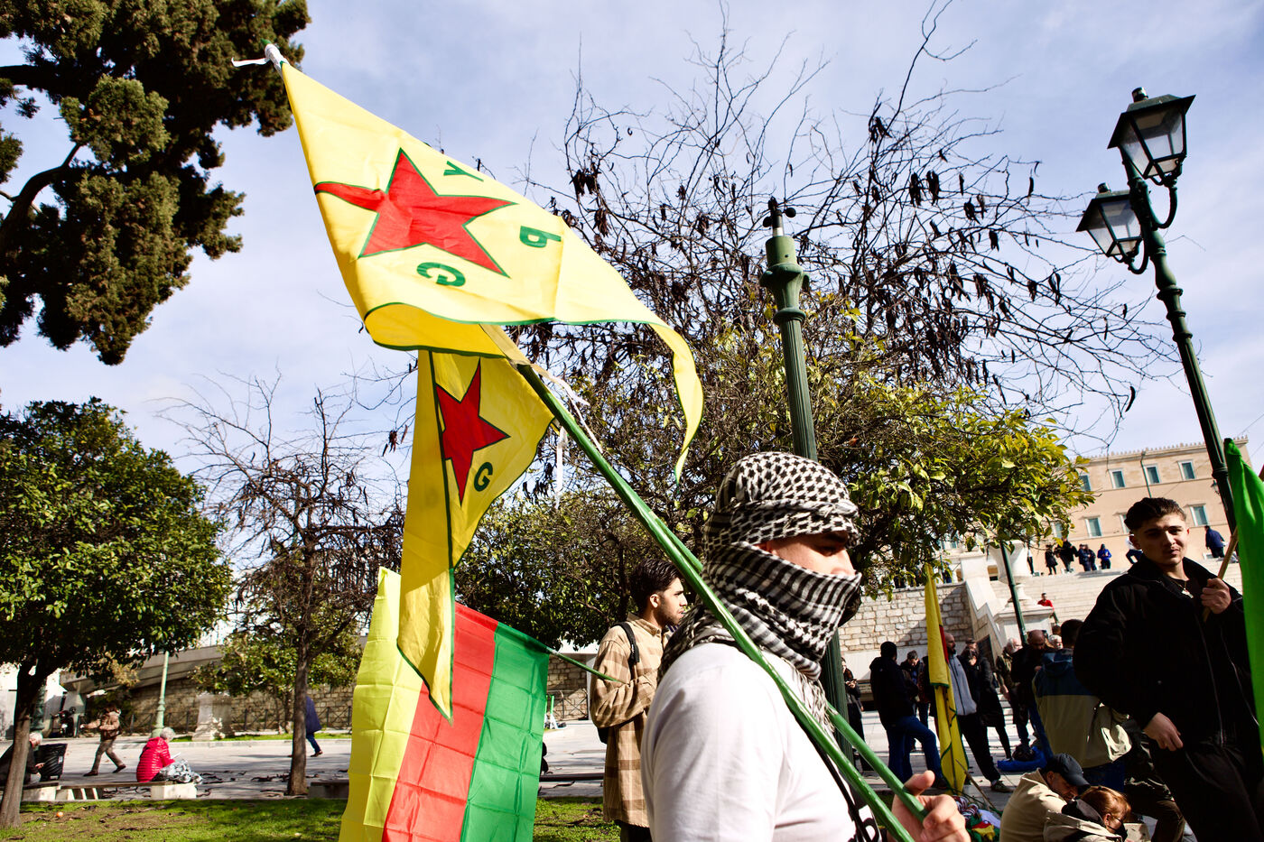The series showcases the diversity of participants: children and babies waving flags, men and women posing peace gestures, and expressive portraits of activists, some with Kurdish symbols on their uniforms or face paint. These images convey unity, resistance, and collective commitment within the demonstration, while also capturing intimate and focused moments at the heart of the mobilization.
