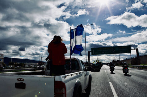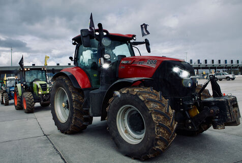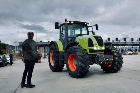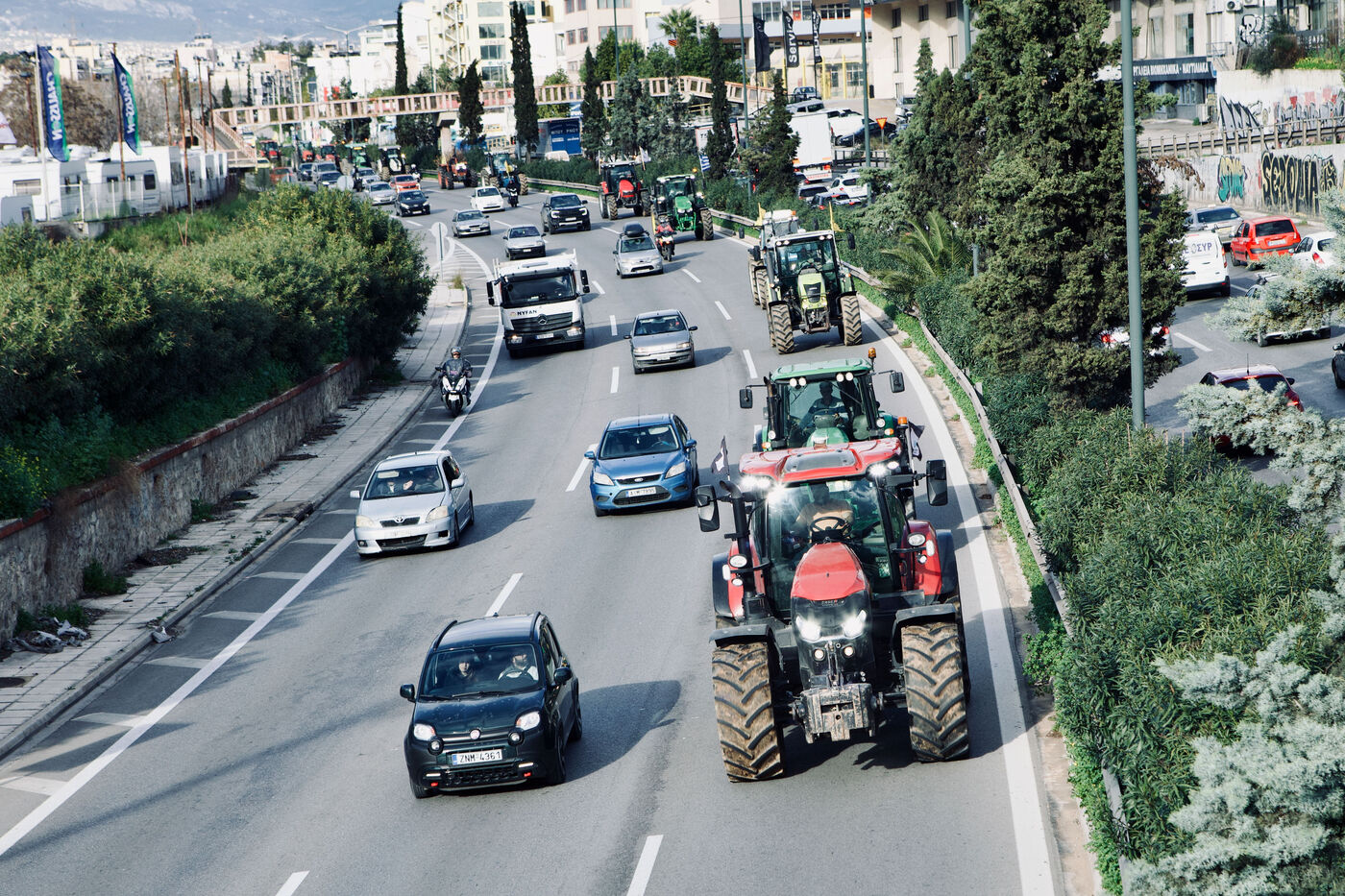 Images capture the human dimension, interactions, and scale of the protest convoy along highways and urban streets, highlighting the urgency of farmers’ demands.