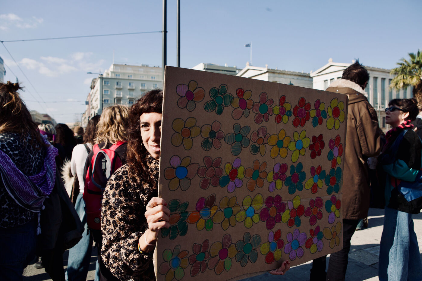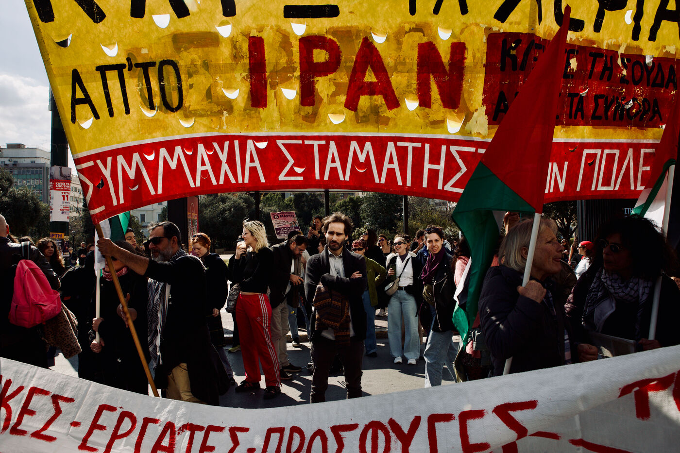 Dans le centre-ville d’Athènes, les manifestants ont célébré la Journée internationale des femmes avec des marches, des performances de rue et des pancartes créatives. Des femmes dansant sur scène avec des foulards kufiye aux individus brandissant des drapeaux pour la libération humaine et animale, les manifestations ont mêlé satire, solidarité et narration visuelle. Les événements ont mis en avant les revendications féministes, la visibilité queer et des causes plus larges de justice sociale, illustrant l’énergie de l’engagement collectif.
