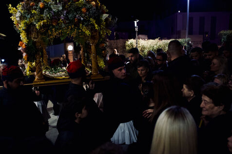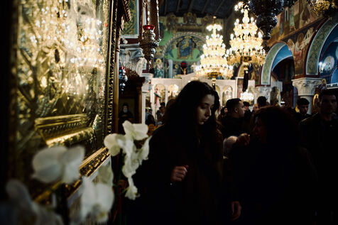 Le Vendredi saint, des personnes ont marché à Corinthe antique avec des bougies et des lanternes. Des lanternes en papier ont été envoyées dans le ciel, puis la soirée s’est terminée à l’église.