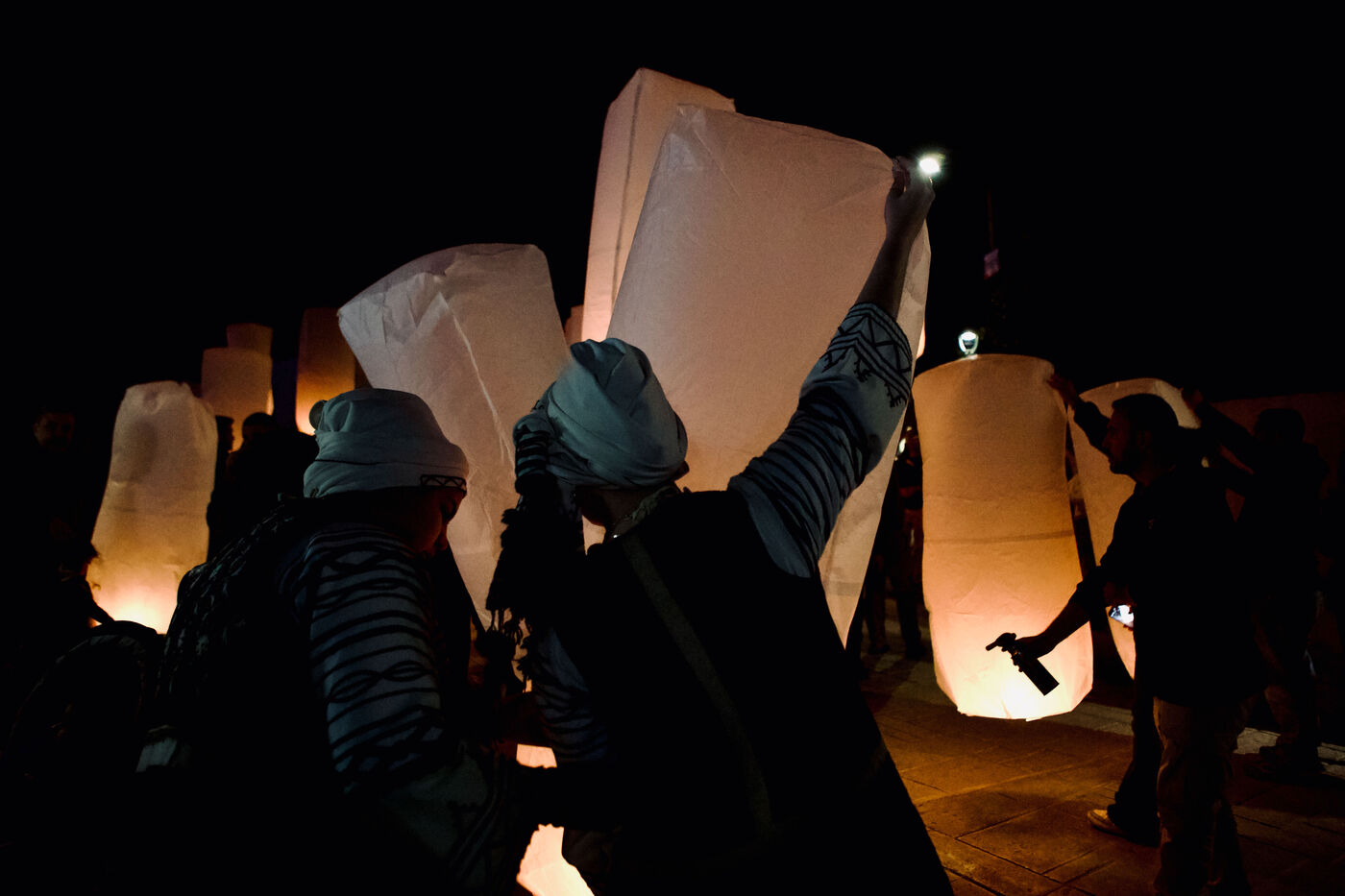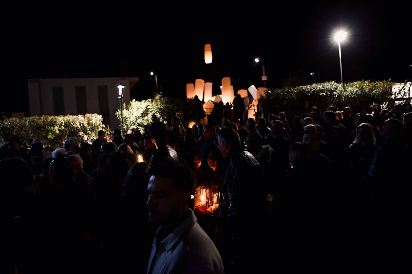 On Good Friday, people walked through Ancient Corinth with candles and lanterns. Paper lanterns were released into the sky, and the evening ended with a church service.