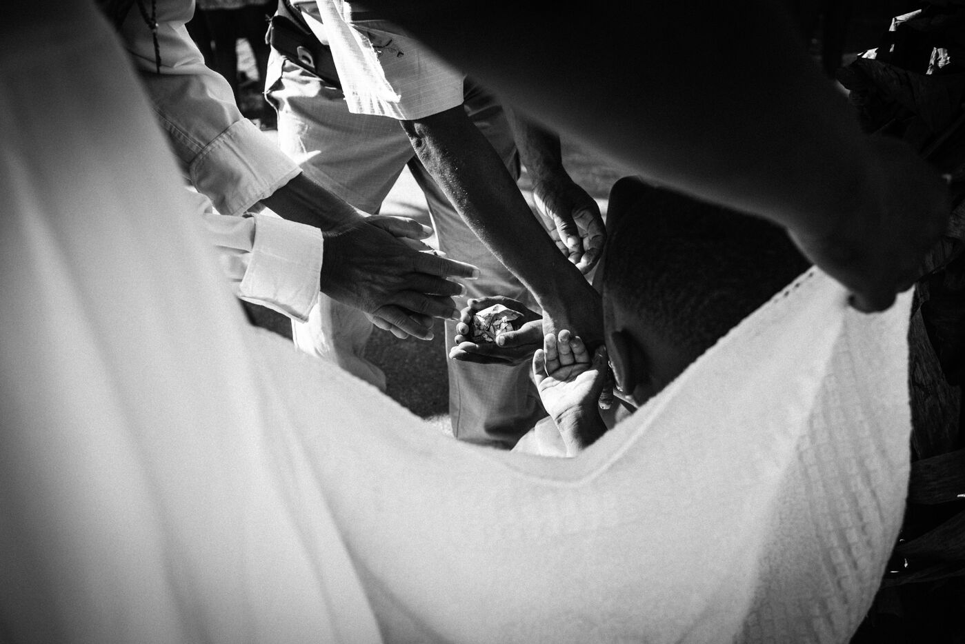 Nego Fugido is a theatrical ceremony that emerged in Acupe, a quilombola territory located near the city of Santo Amaro. This ceremony was born mainly to give voice to the dead and to the pain caused by centuries of slavery. Among its characters are the negas, the capitães do mato (slave hunters), the police, the emperor, and the princess, who all represent the fight against slavery. Contrary to what is written in the “official history” — which claims that the abolition of slavery in Brazil was “granted” by the goodwill of the royal family — Nego Fugido tells a story marked by the struggles of quilombola communities, who were the true historical agents in the conquest of their freedom. It is a story of rebellion and of fighting to tear freedom from the hands of the oppressors.