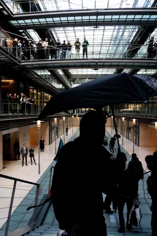 On 10 February 2020 activists from Youth for Climate France entered the building "Le Centorial" to occupy the premises of the company BlackRock.