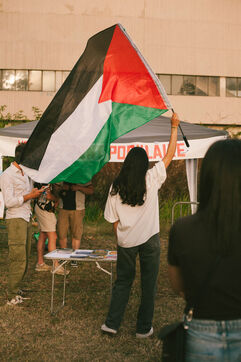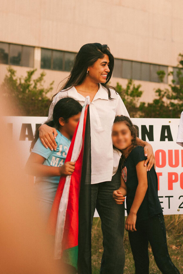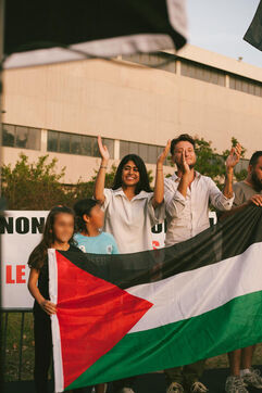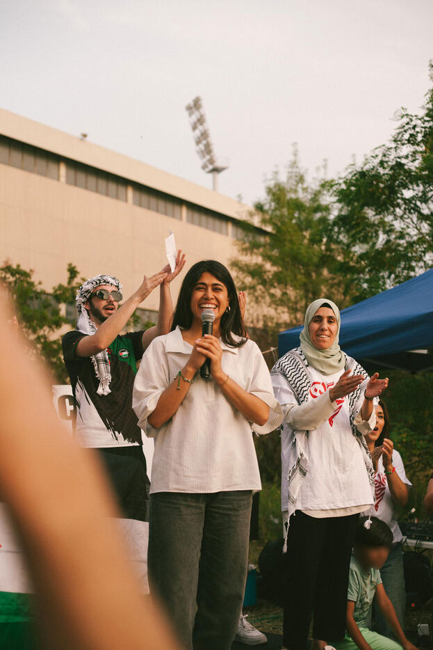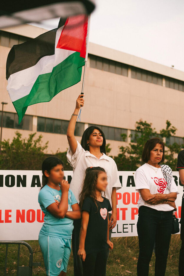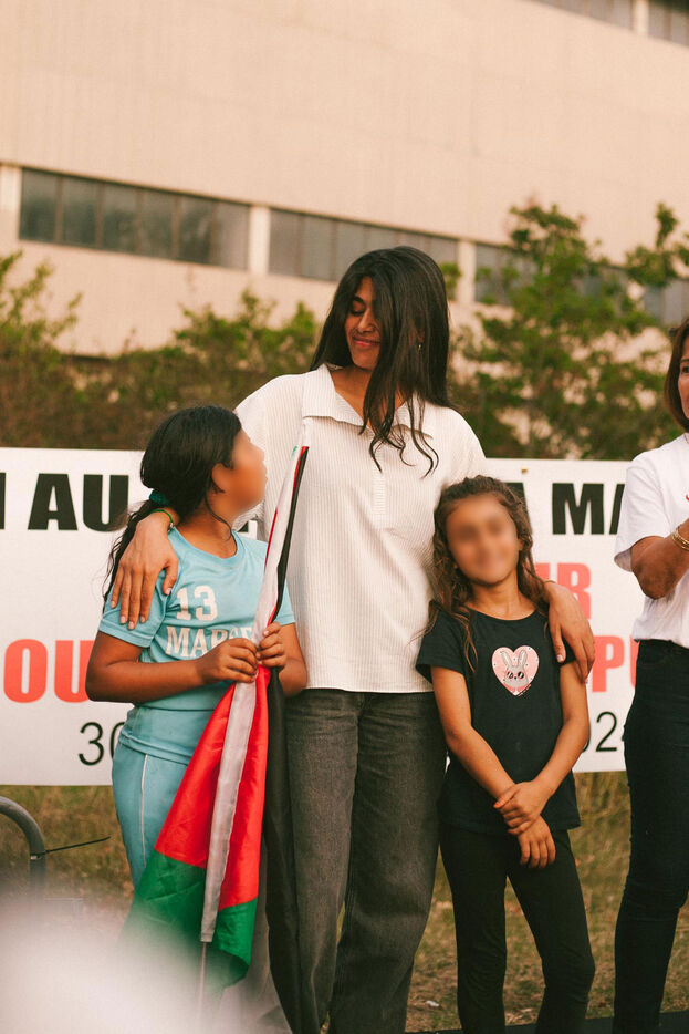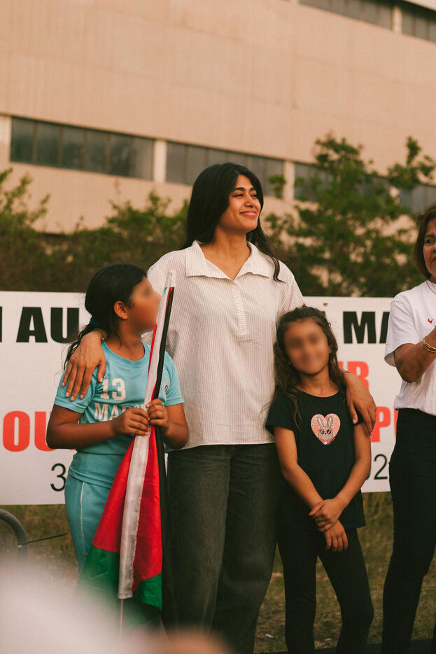 Surrounded by Palestinian flags and engaged citizens Rima Hassan expressed her solidarity with the Palestinian people emphasizing her commitment to social justice and human rights