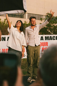 Rima Hassan supporting Palestine and Raphaël Arnault