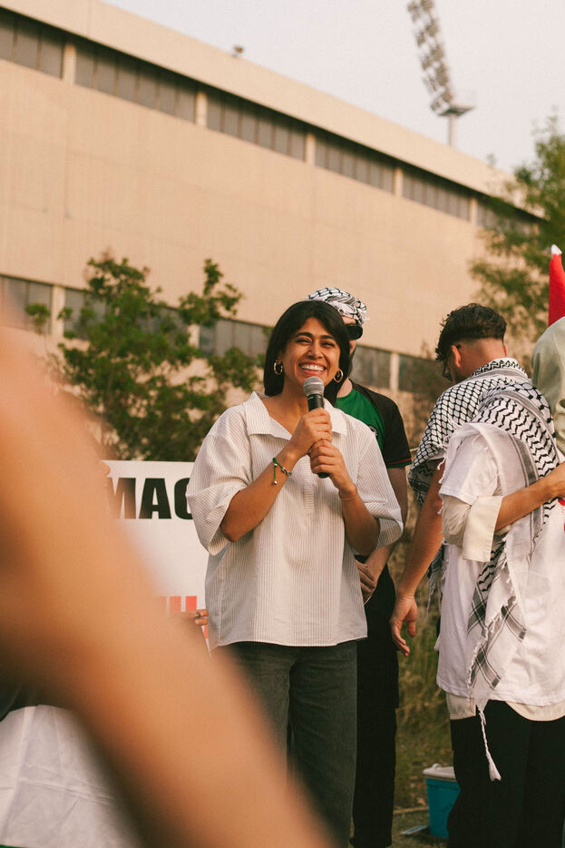 Rima Hassan en soutien à la Palestine et à Raphaël Arnault