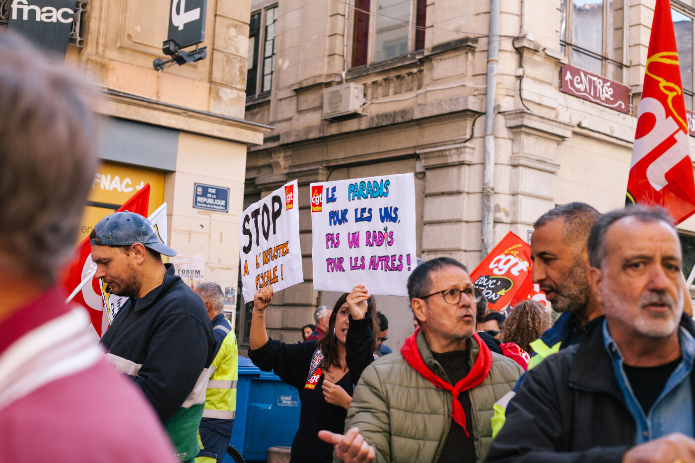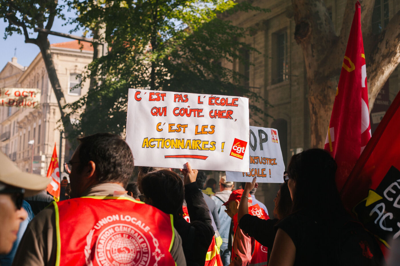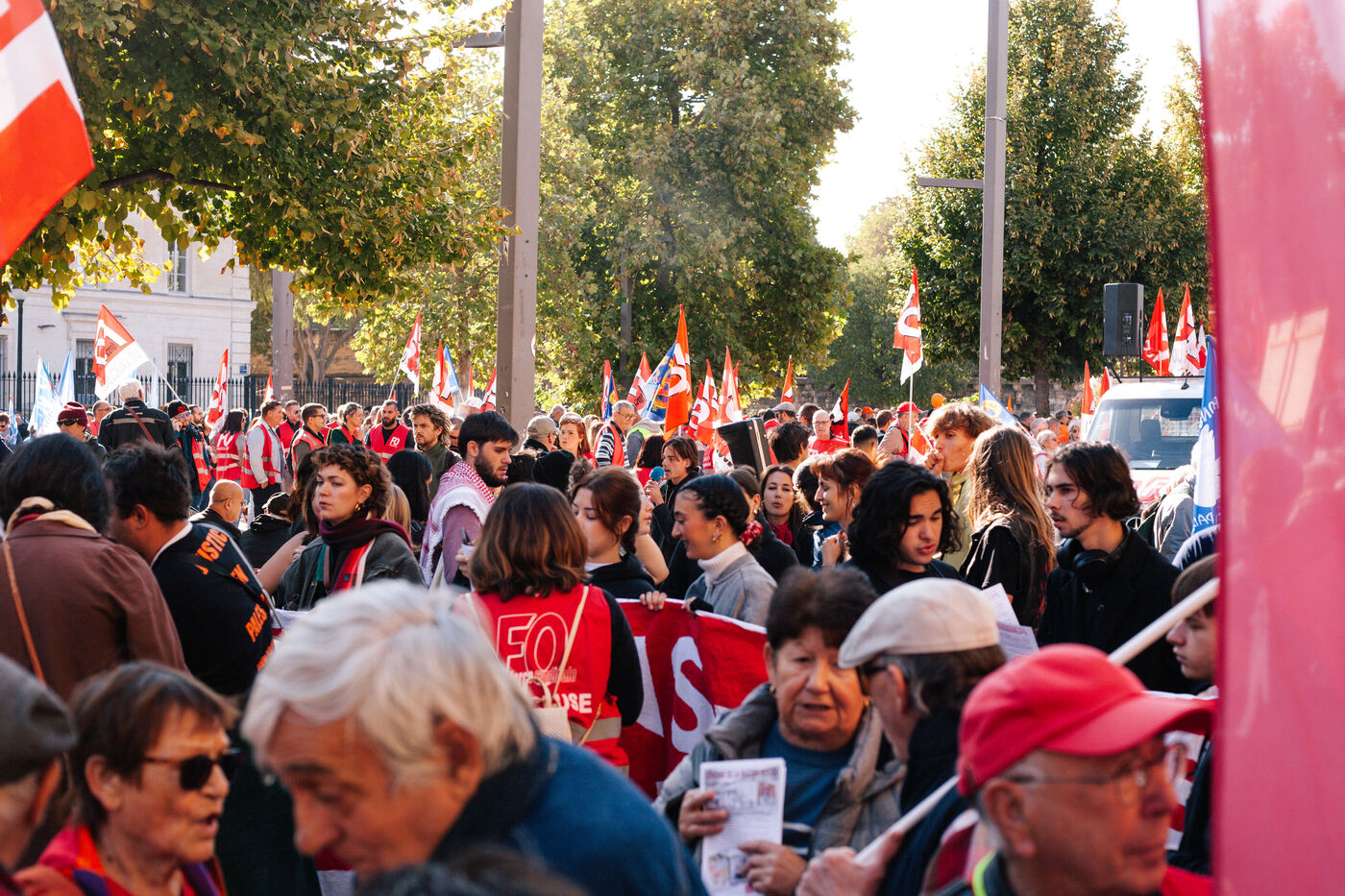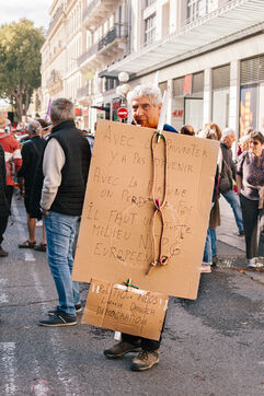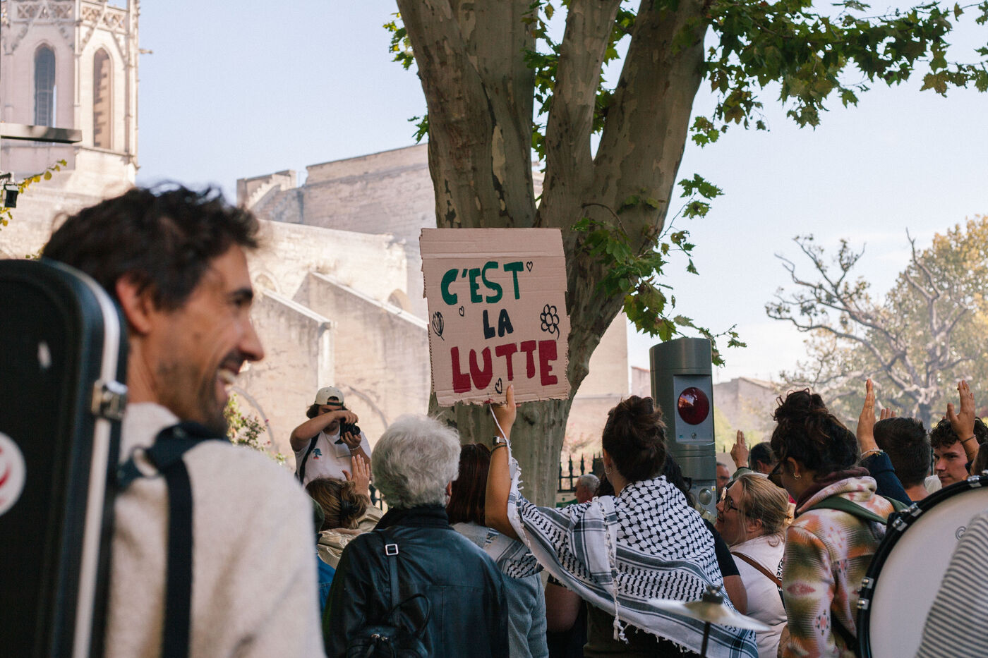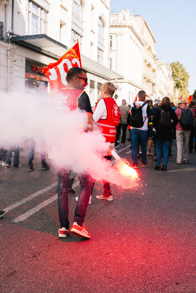 In Avignon on October 2nd 2025, protesters gathered as part of a new nationwide social mobilization day. Unions, collectives, and citizens marched through the streets to express their demands and take part in symbolic actions.