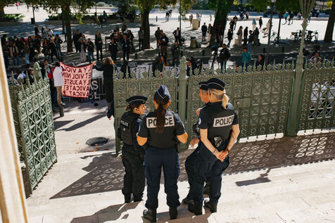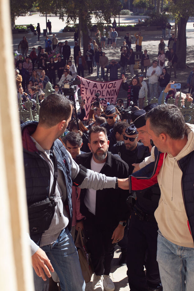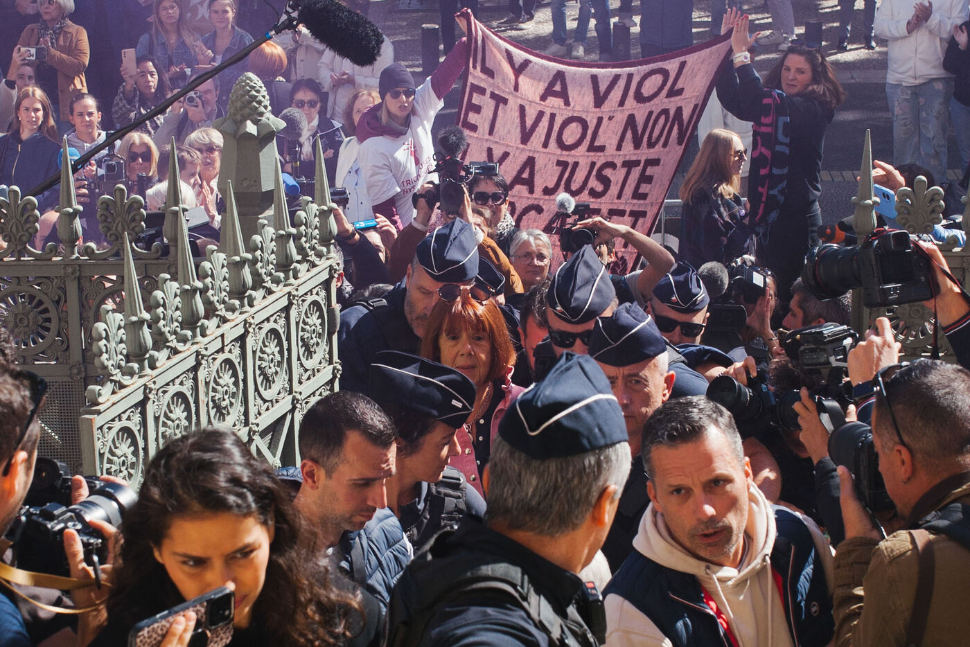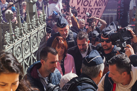 In front of the Nîmes courthouse, several feminist gatherings are taking place throughout the day. Activists, collectives, and associations are denouncing rape culture and showing support for the victim, emphasizing the significance of this case as a symbol of sexual violence in France.