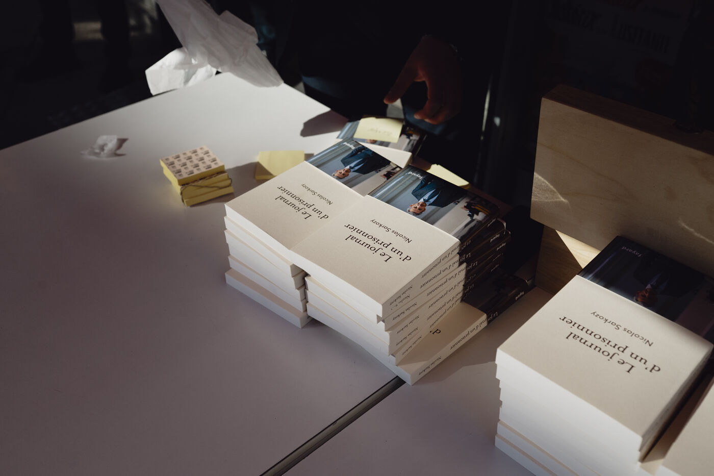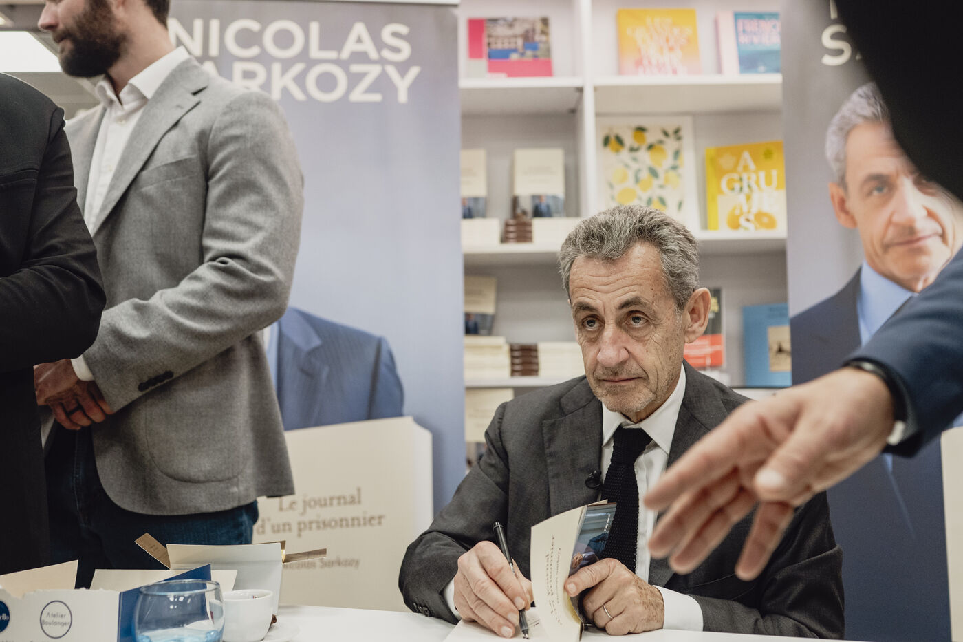 Séance de dédicace de l’ancien président Nicolas Sarkozy pour son livre Le Journal d’un prisonnier, écrit durant son incarcération à la prison de la Santé en octobre 2025.