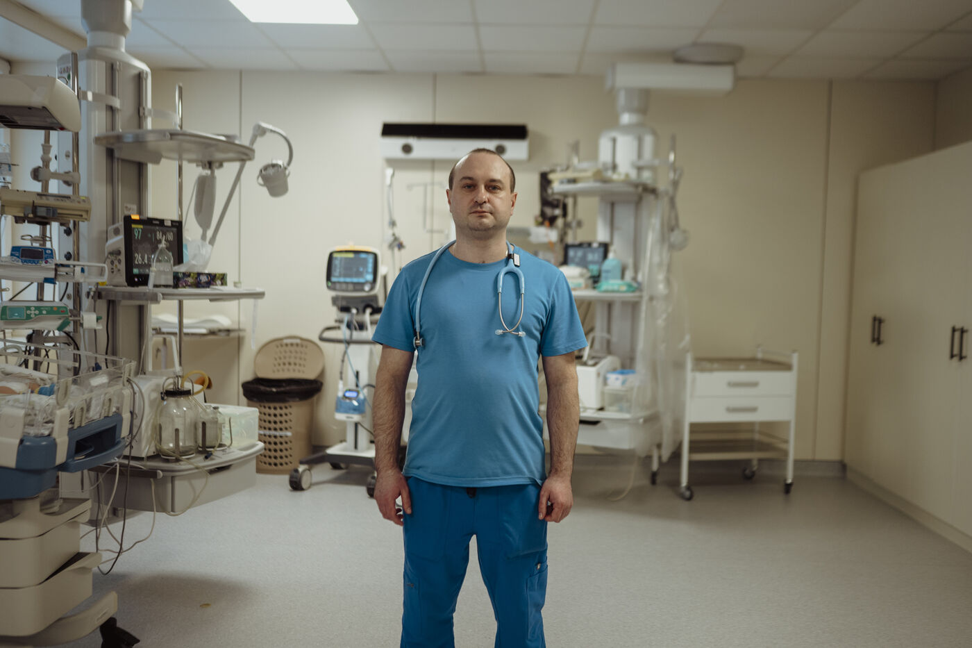 Je me suis rendu en Ukraine à deux reprises depuis le début du conflit : d’abord à Lviv, puis à Kyiv. À travers cette série, j’ai souhaité rencontrer les médecins, infirmiers et personnels de santé qui ont accepté de m’ouvrir les portes de leurs établissements, pour raconter comment on soigne normalement, dans un pays qui vit sous la menace permanente de la guerre.