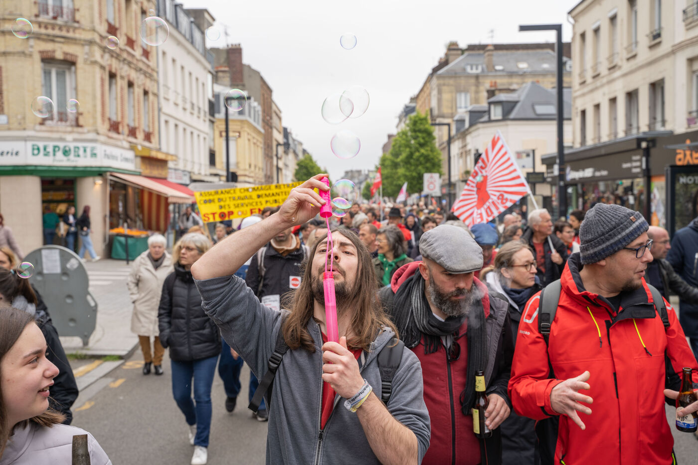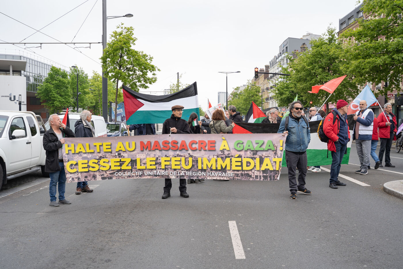 Around 700 people marched through the streets of Le Havre this morning for the workers' day demonstration on 1 May. The demonstrators' demands included the defence of workers' rights, peace in Palestine and the fight against sexism, racism and Islamophobia.