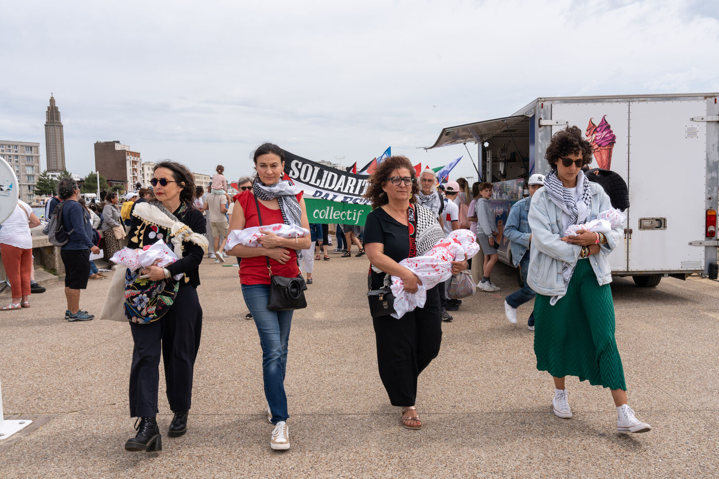 A gathering followed by a silent march to denounce the ongoing genocide in Gaza and call for an end to the war took place on the beach at Le Havre on Saturday 31 May 2025.