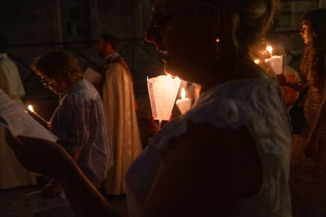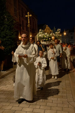 Night procession of the statue of the Virgin Mary on the eve of the Assumption through the streets of Arles to the Basilica of Saint Trophime.