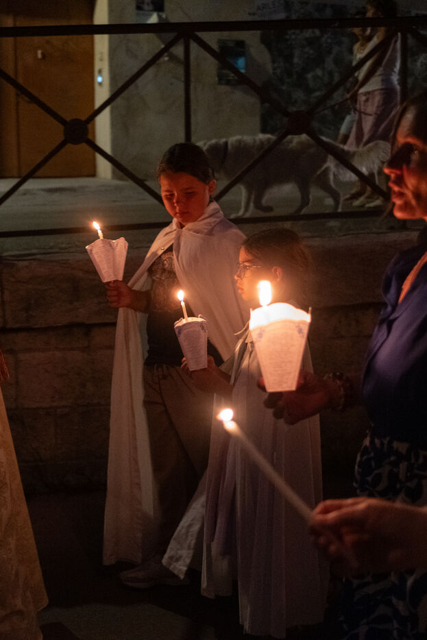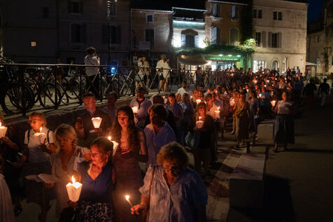 Procession de nuit de la statue de Vierge Marie la veille de l'Assomption à Arles