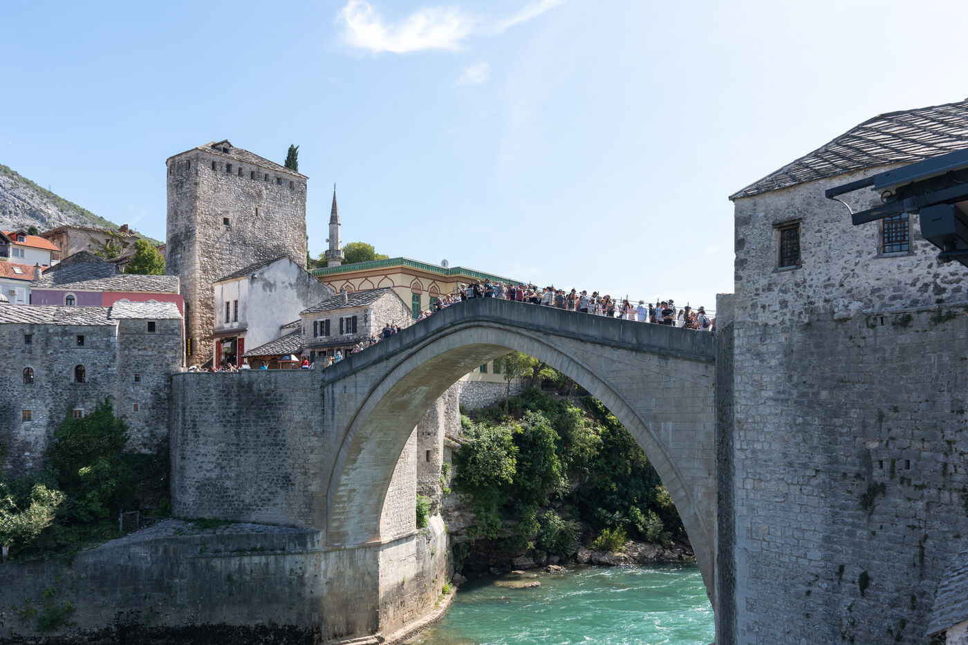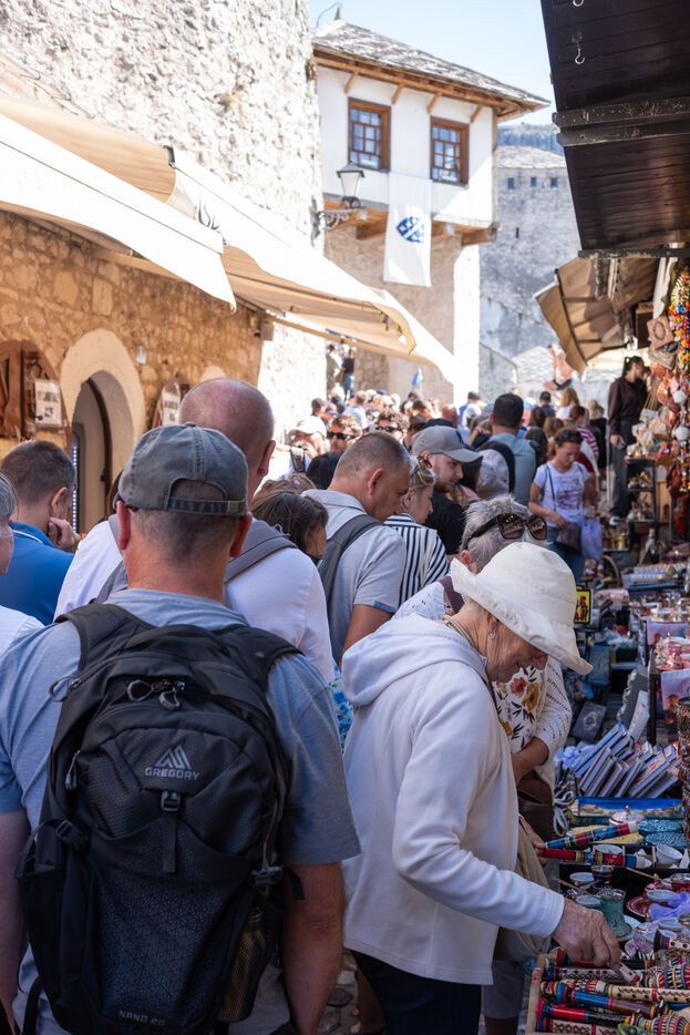 Today, many toursits come to visit the "Old Bridge Quarter of The Old Town", especially the Stari Most, the city's iconic bridge, and the many cafes, restaurants and souvenir shops keep the crowded streets alive.