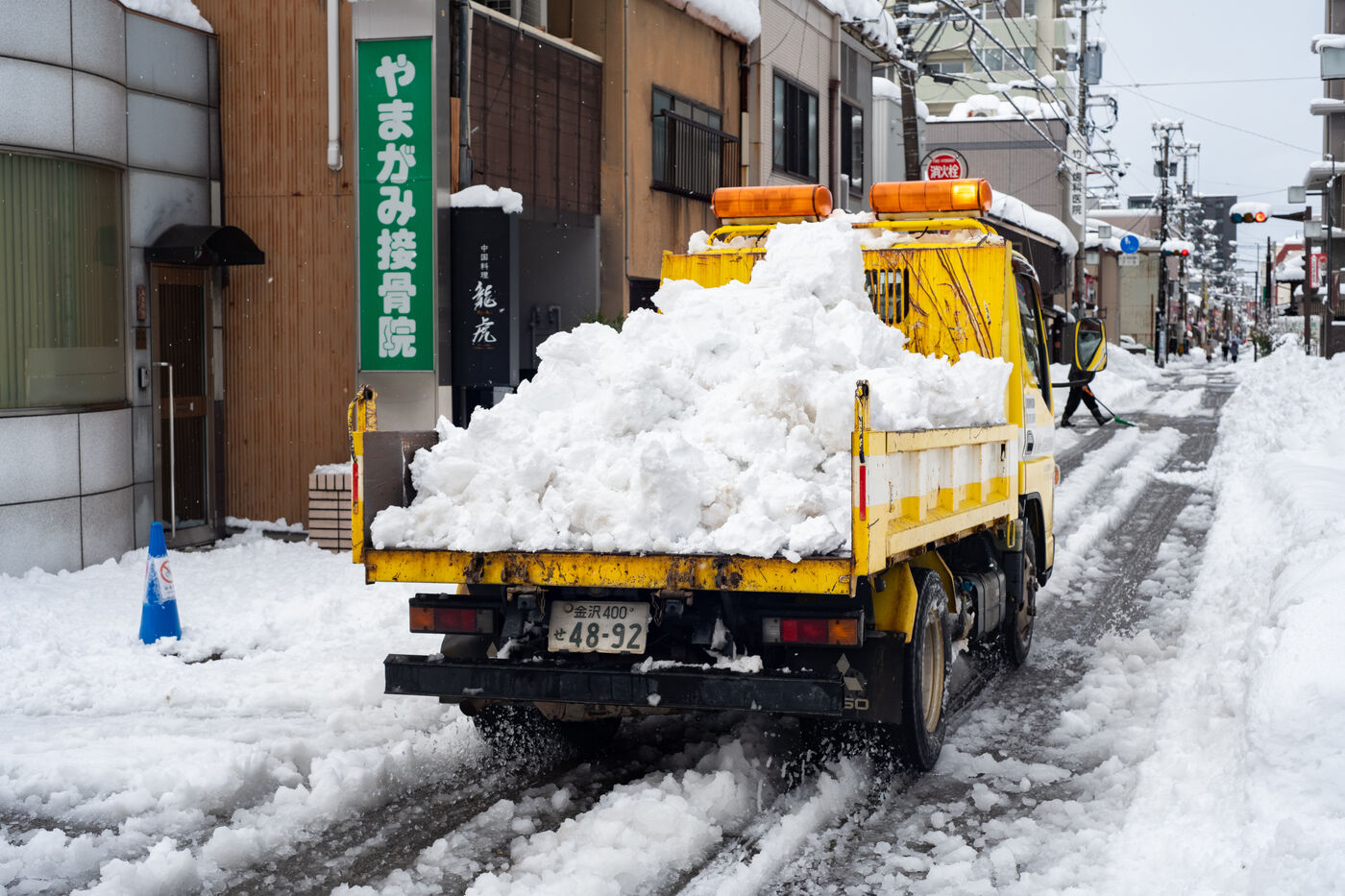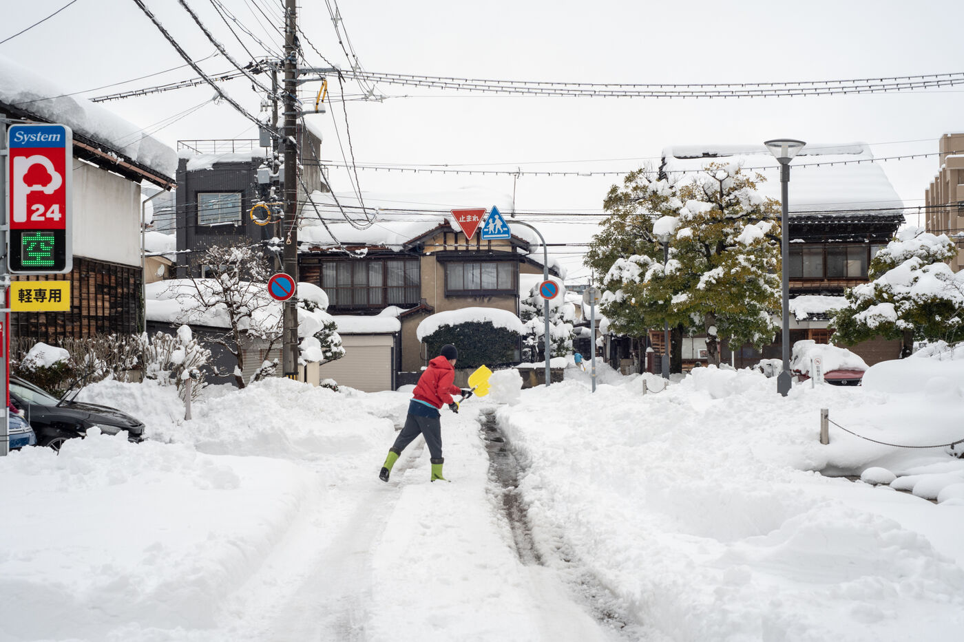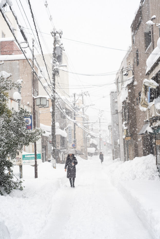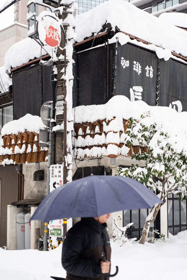 In the city of Kanazawa, where snow drifts can exceed 60 centimetres, traffic has slowed to a crawl, and many residents are clearing the streets with snow shovels.