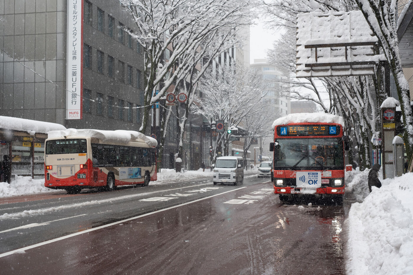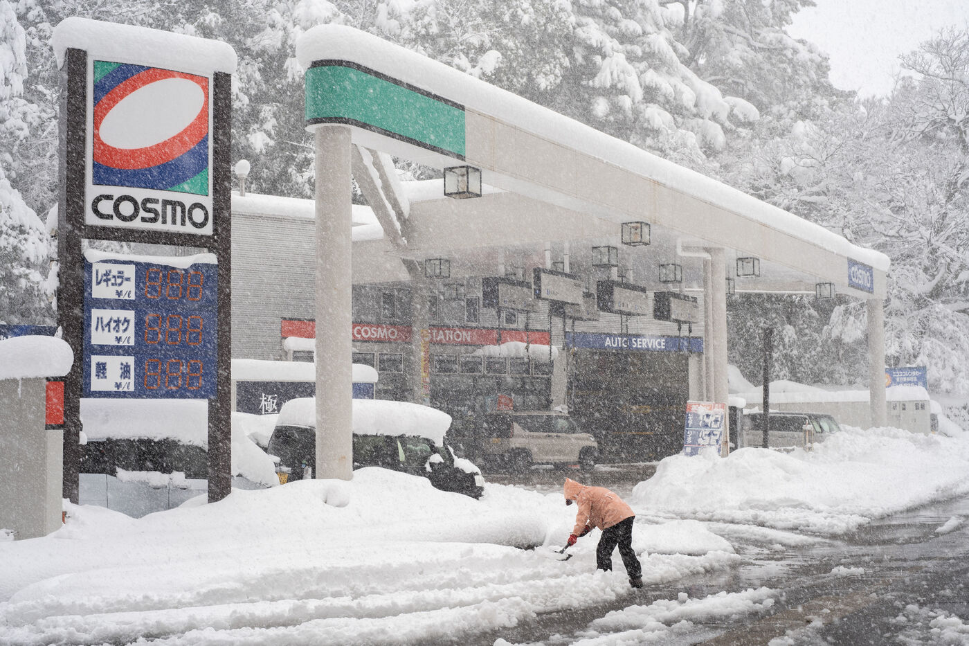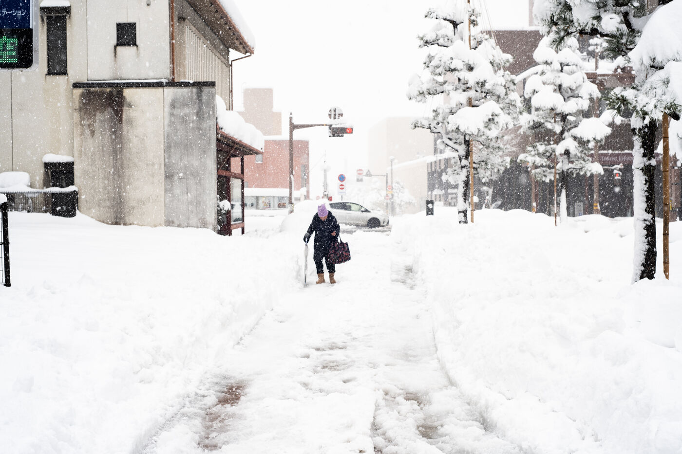 In the city of Kanazawa, where snow drifts can exceed 60 centimetres, traffic has slowed to a crawl, and many residents are clearing the streets with snow shovels.